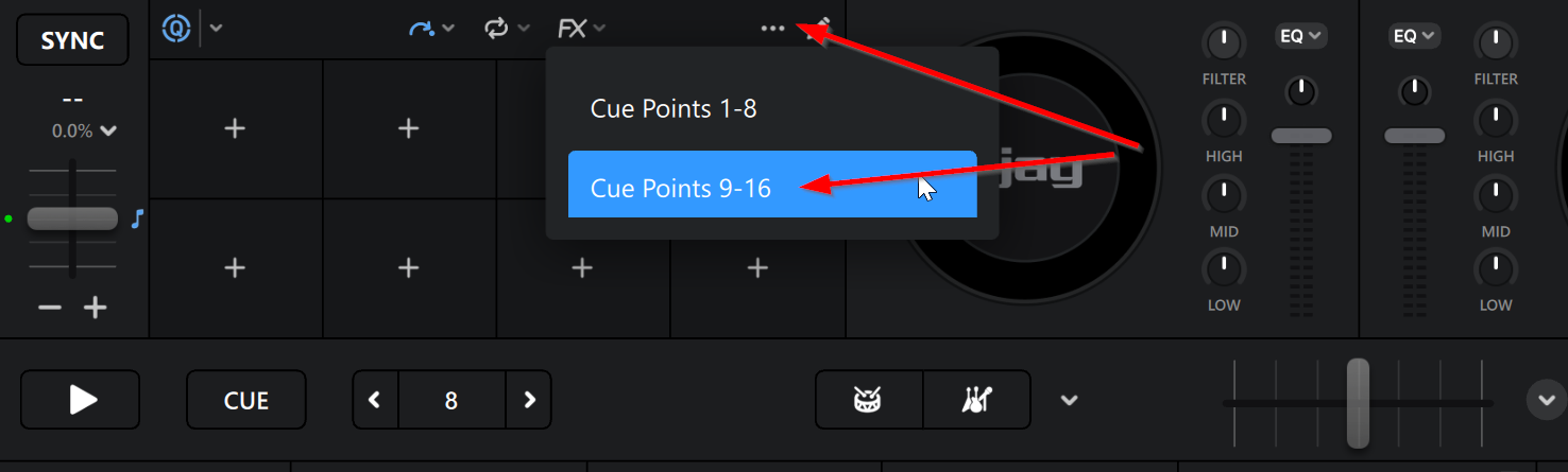 Hi @DjPiloto, I donāt have this hardware to check myself, but you should simple be able to switch to the 9-16 hot cues via the onscreen controls and the pads on your hardware should automatically switch from 1-8 to 9-16.