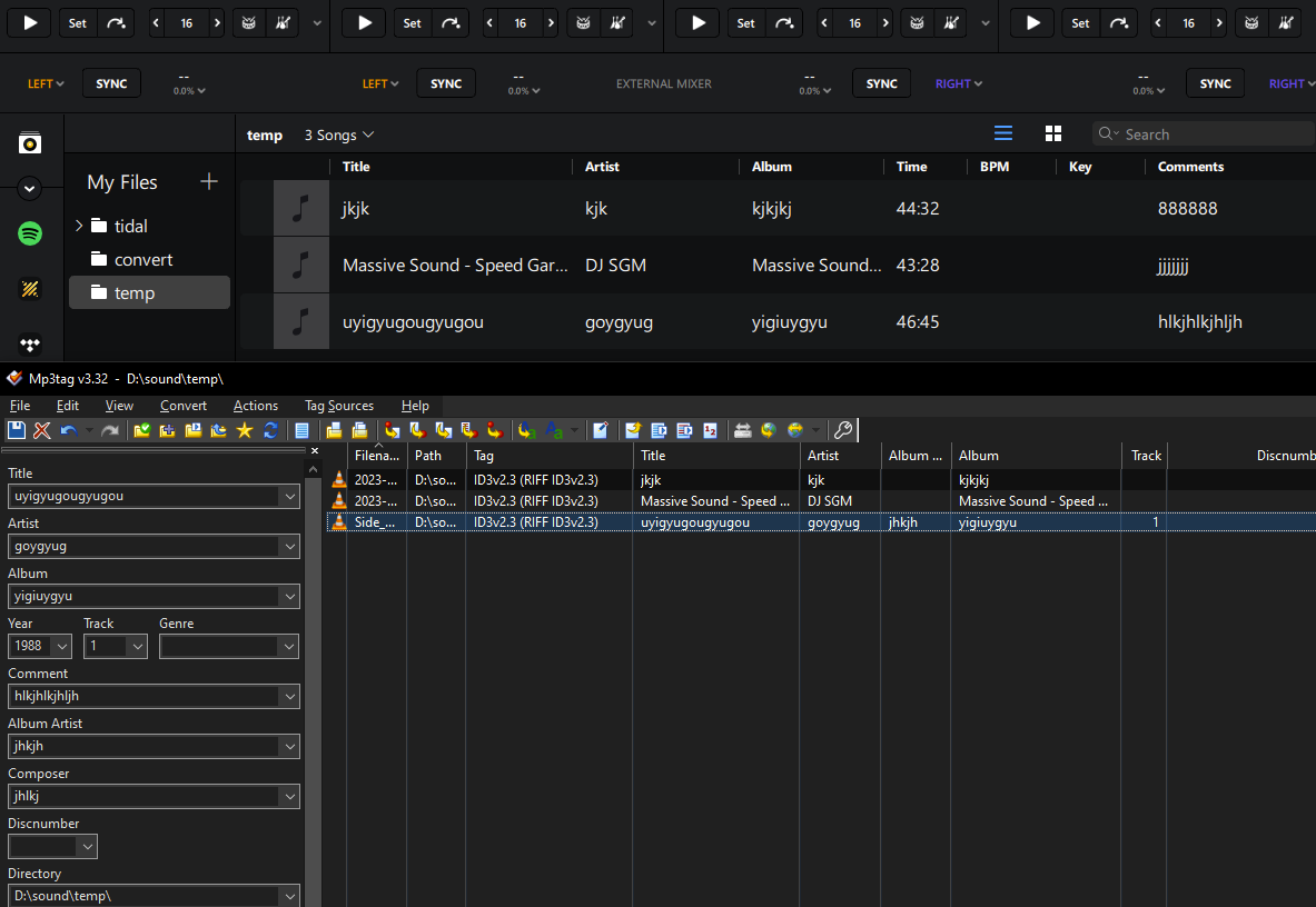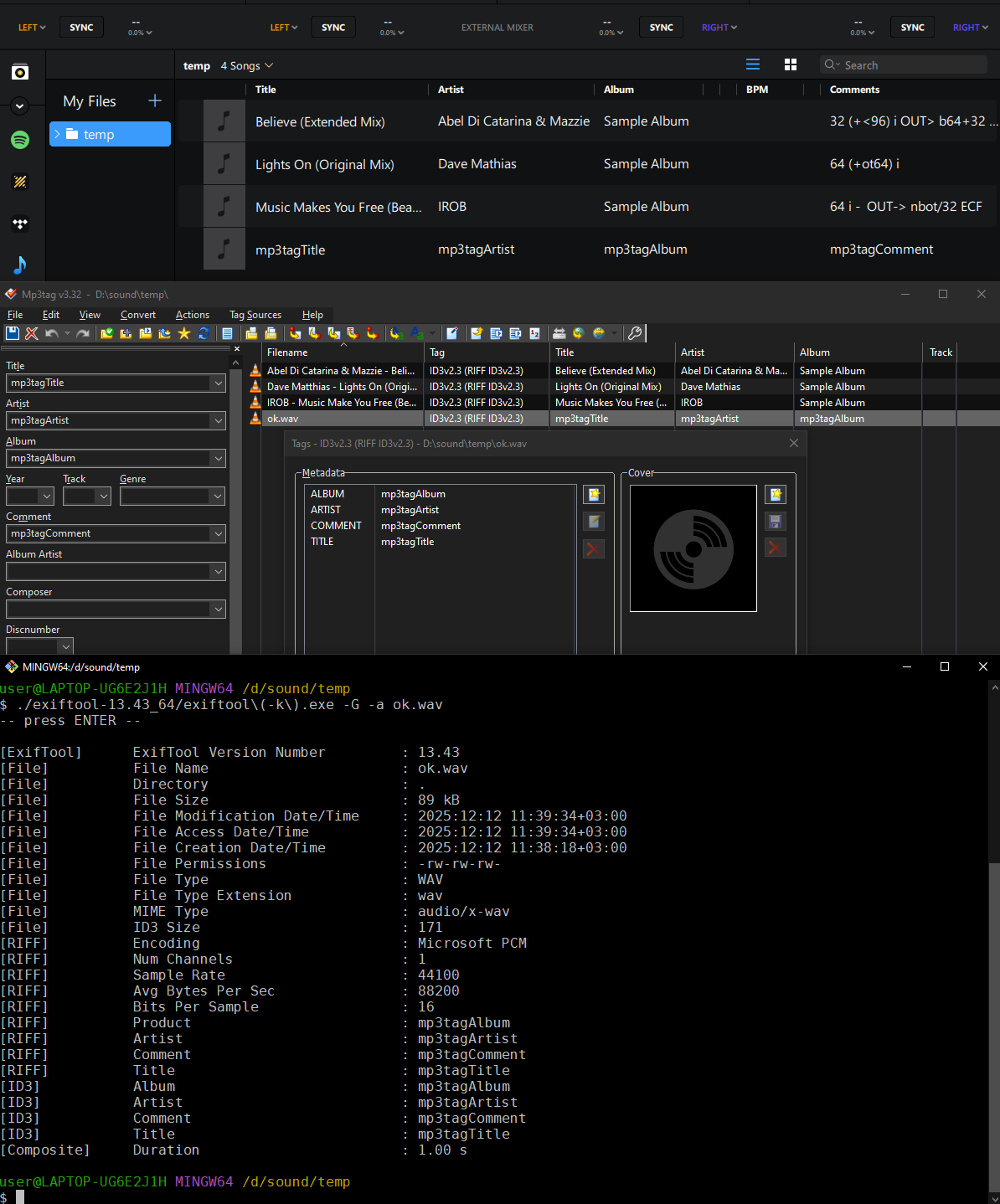 I am attaching three WAV files that do not have their ARTIST data ported from mp3Tag. Please note that none of my WAV files tagged in mp3Tag have successfully ported the ARTIST data into djay Pro. Also please note that this problem has been duplicated by others in the mp3Tag forum. Please relay to your team that in order to properly test this functionality, they must be using the English versions of both Windows 11 Pro and djay Pro, as others have indicated that it is then when they duplicate this problem.