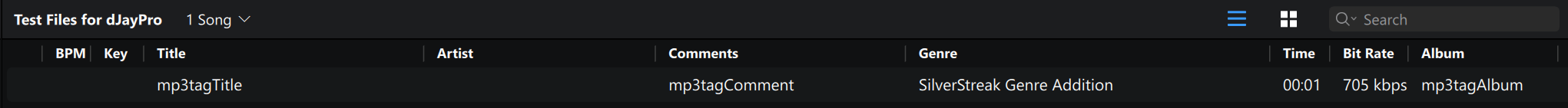 Thanks very much for your help and for sending that sample wav file. I downloaded it, opened it in djay Pro and unfortunately, the ARTIST field content still does not display. I opened the file in mp3Tag and added data in the GENRE field just to see if it would display in djay Pro. That GENRE content displays, but again, not the ARTIST field’s content. Please see attached screenshot.