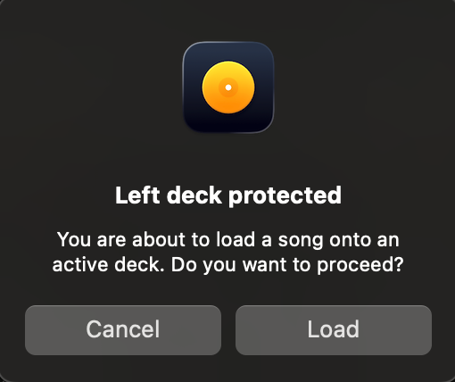 Id like to suggest that when prompted to load or cancel when trying to load to a track that is already playing, we should be able to use the controller to press cancel. Now we’re stuck with using a mouse or trackpad to press cancel. This can be a problem when performing live.**