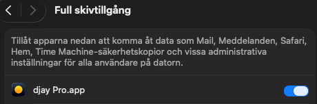 Thanks for the additional info @DJ_Boum_Boum. Please ensure djay is added to Files & Folders as well as Full Disk Access: