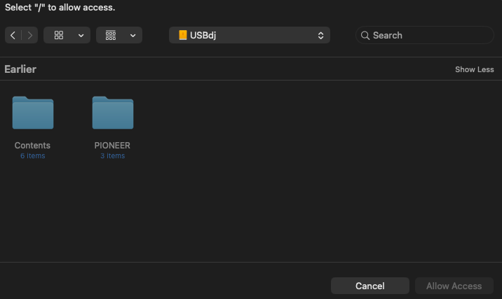 I have tested multiple USB drives, all formatted in FAT32. I’ve tried the suggestions above with no success. The only way I can get Djay to allow access to the USB drive is to change the name of the USB drive every time I load Djay. I’m using a MacBook Pro M1 Max on macOS Tahoe 26.2, thanks.
