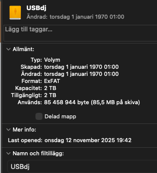 FWIW, I have just tried with a small capacity USB stick (the last was a 1TB drive) and so far, it worked once in terms of allowing access within Djay and exporting to Rekordbox - however, it was ejecting and then reconnecting the drive that recreated the same error as before.
