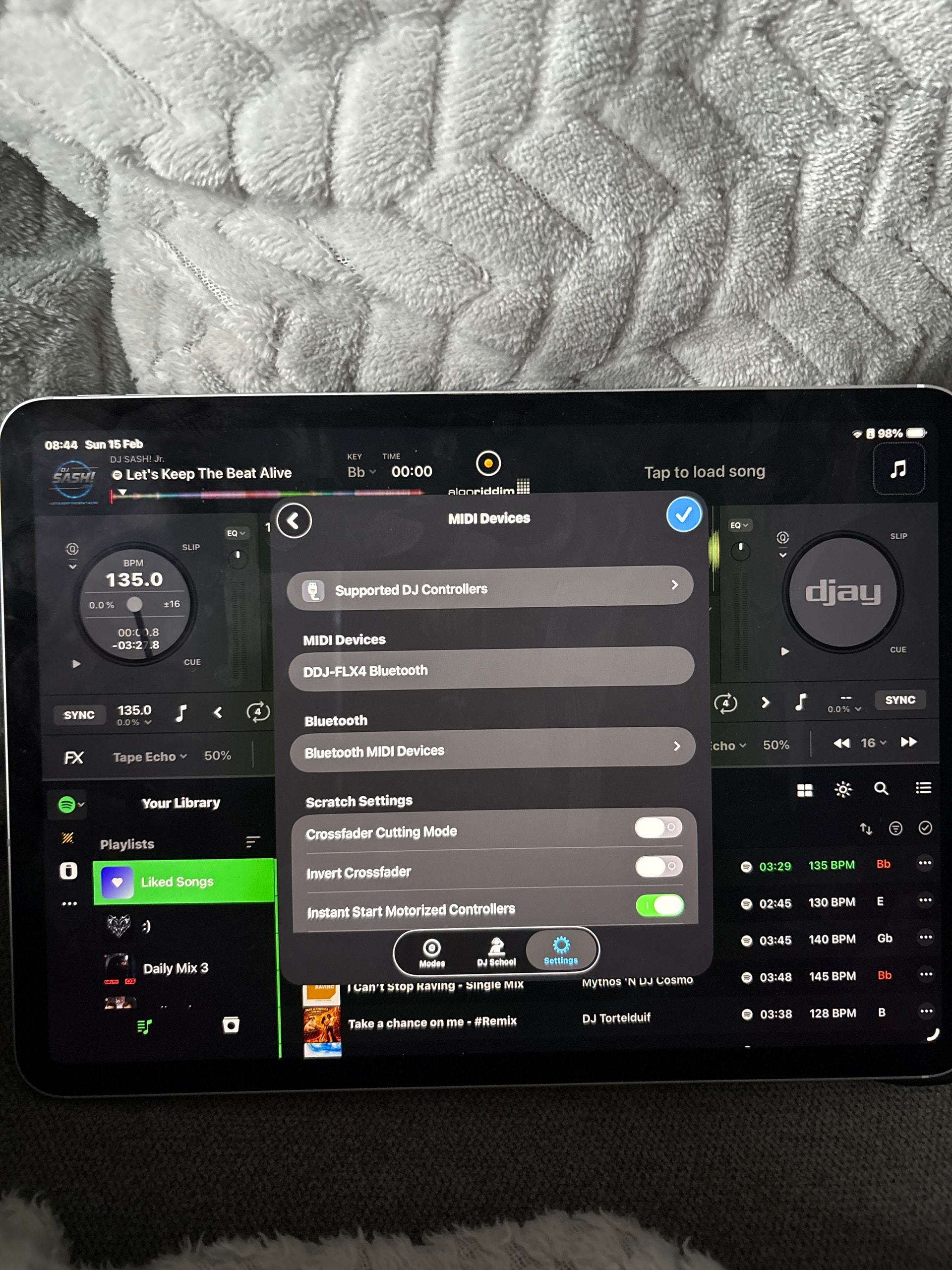 If the FLX4 is connected to power, but still doesn’t light up when connected to you device via Bluetooth, please share screenshots of your djay Settings>Audio Devices and Settings>MIDI Devices. Thanks!