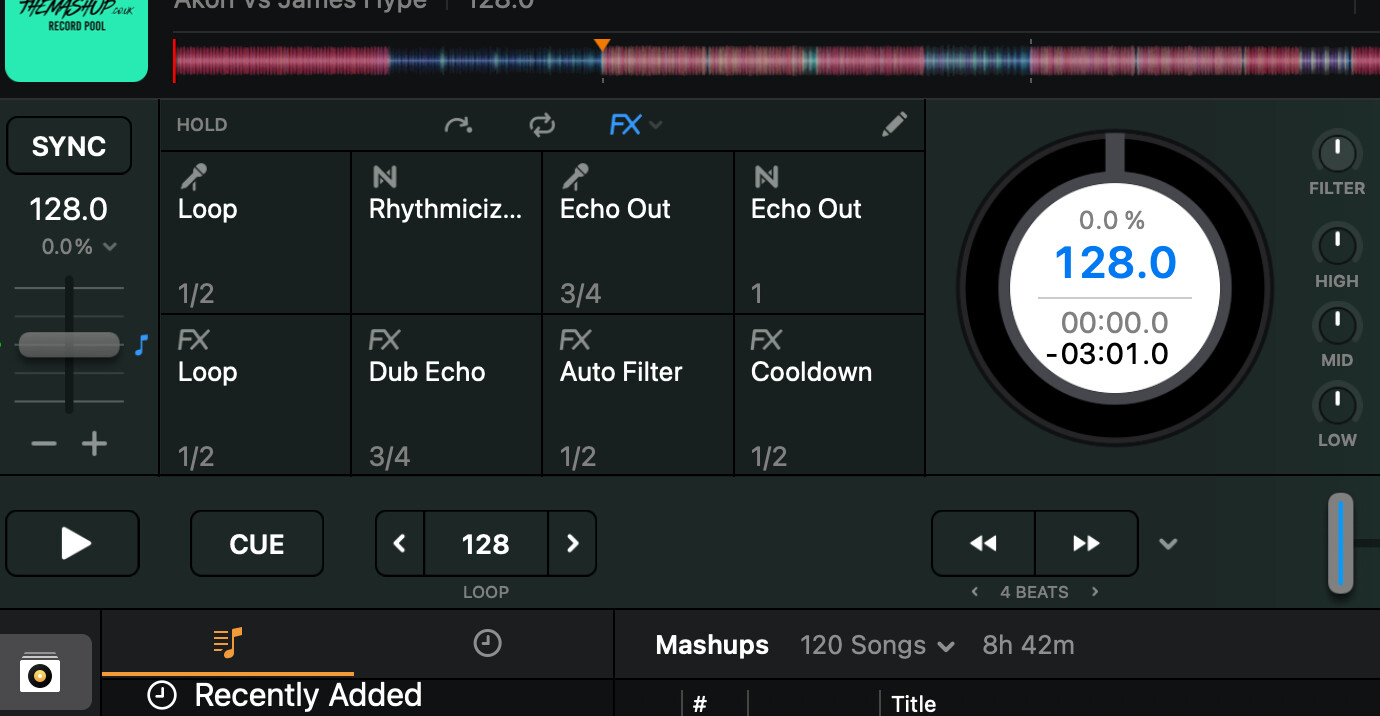 One of the major gripes I have, comparing it to how Rekordbox and Virtual DJ work on the FLX-10, is that when I switch the pads function on the controller, the display in the UI doesn’t change correspondingly (it always shows PadFX). For instance, when I switch to Hot Cues, I’d expect it to be reflected on the computer screen too.