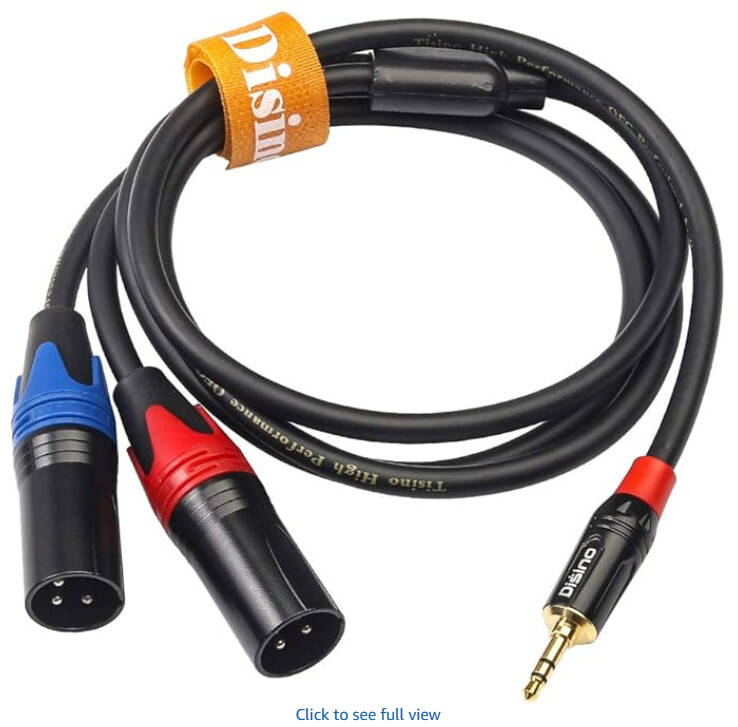Here’s an example on Amazon: Amazon.com: Disino 1/8 Inch to Dual XLR Male Y-Splitter Cable,Unbalanced 3.5mm Mini Jack TRS Stereo to Double Male XLR Adapter Interconnect Breakout Patch Cord - 6.6 Feet/2 Meters : Musical Instruments