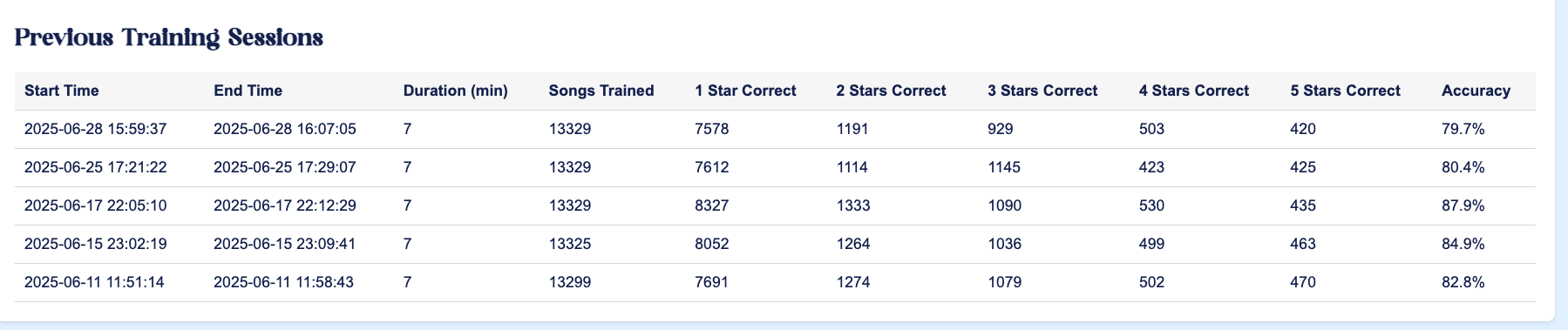 So i end up creating my own server, give it all my tracks and started rating tracks in my own collection. A complete server that manages all my tracks, as well as having an incorporated âa.i.â learning system. The system learns from my personal Rating of tracks and tries to predict which tracks i would give a good or bad rating (it uses audio fingerprinting âshazamâ technique to analyze the musical data). So far highest succes rate of 87.9% and lowest 79.7%.