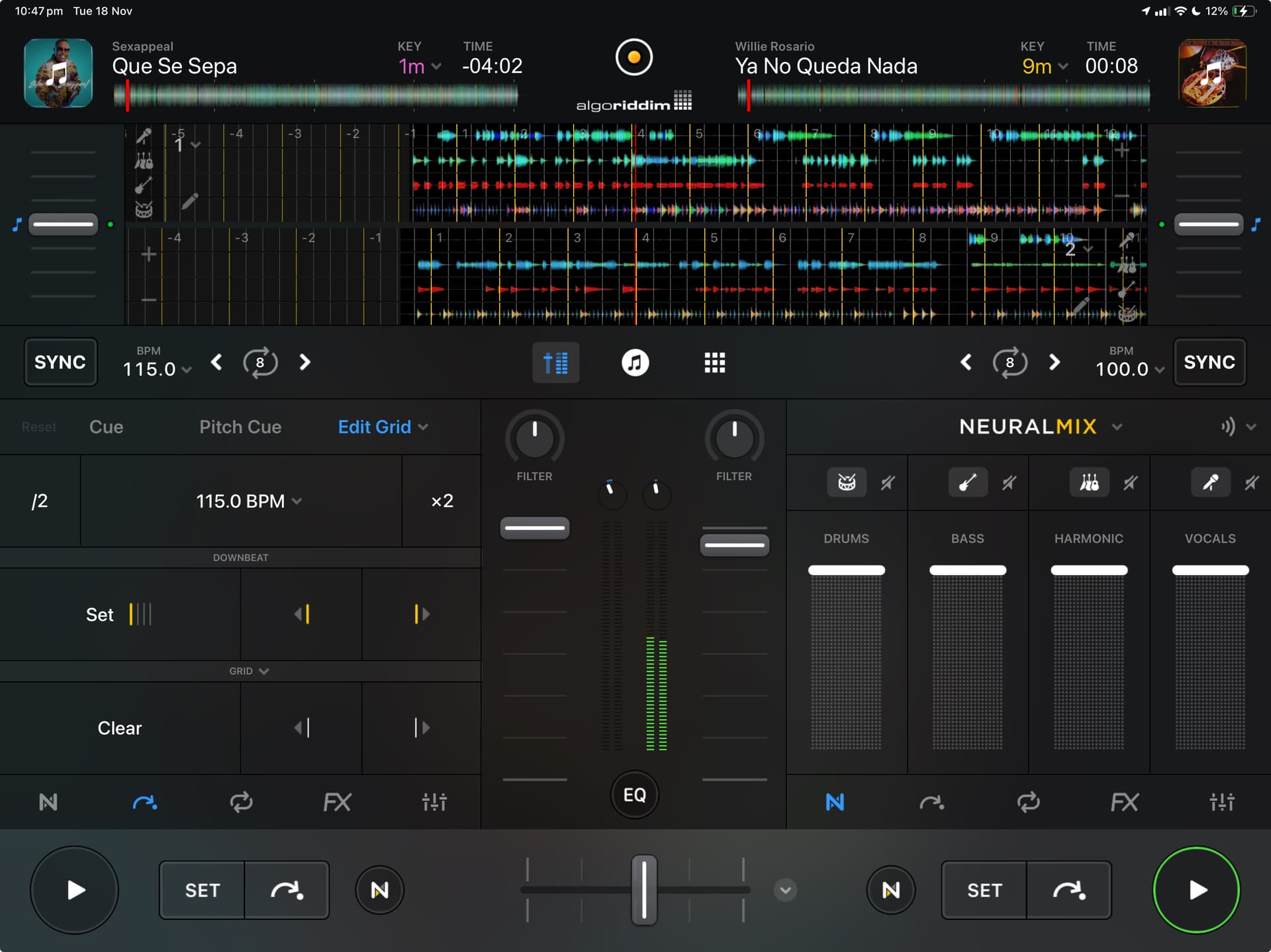 Some tracks lose their way, especially tracks that don’t strictly follow 4/4 timing, and the downbeat as presented in djay isn’t necessarily the best mix point.