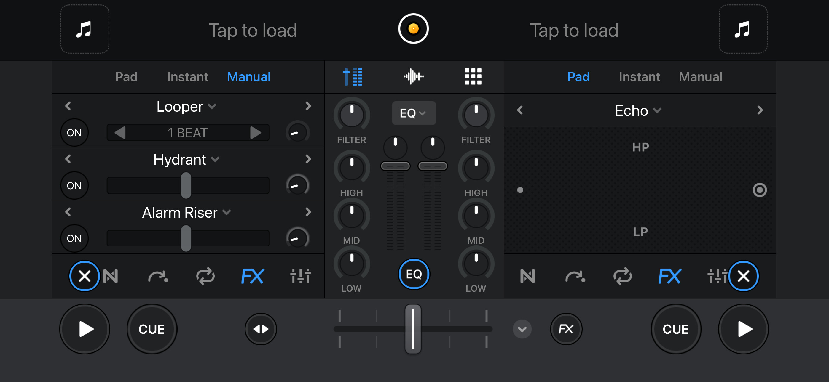 - Add a compact FX mode that coexists with cue, EQ and sampler buttons.