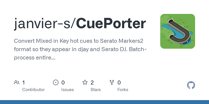 CuePorter converts Mixed in Key cue points into proper Serato Markers2 tags that djay and Serato DJ can read natively. Just select your music folder and it’ll batch-process everything.