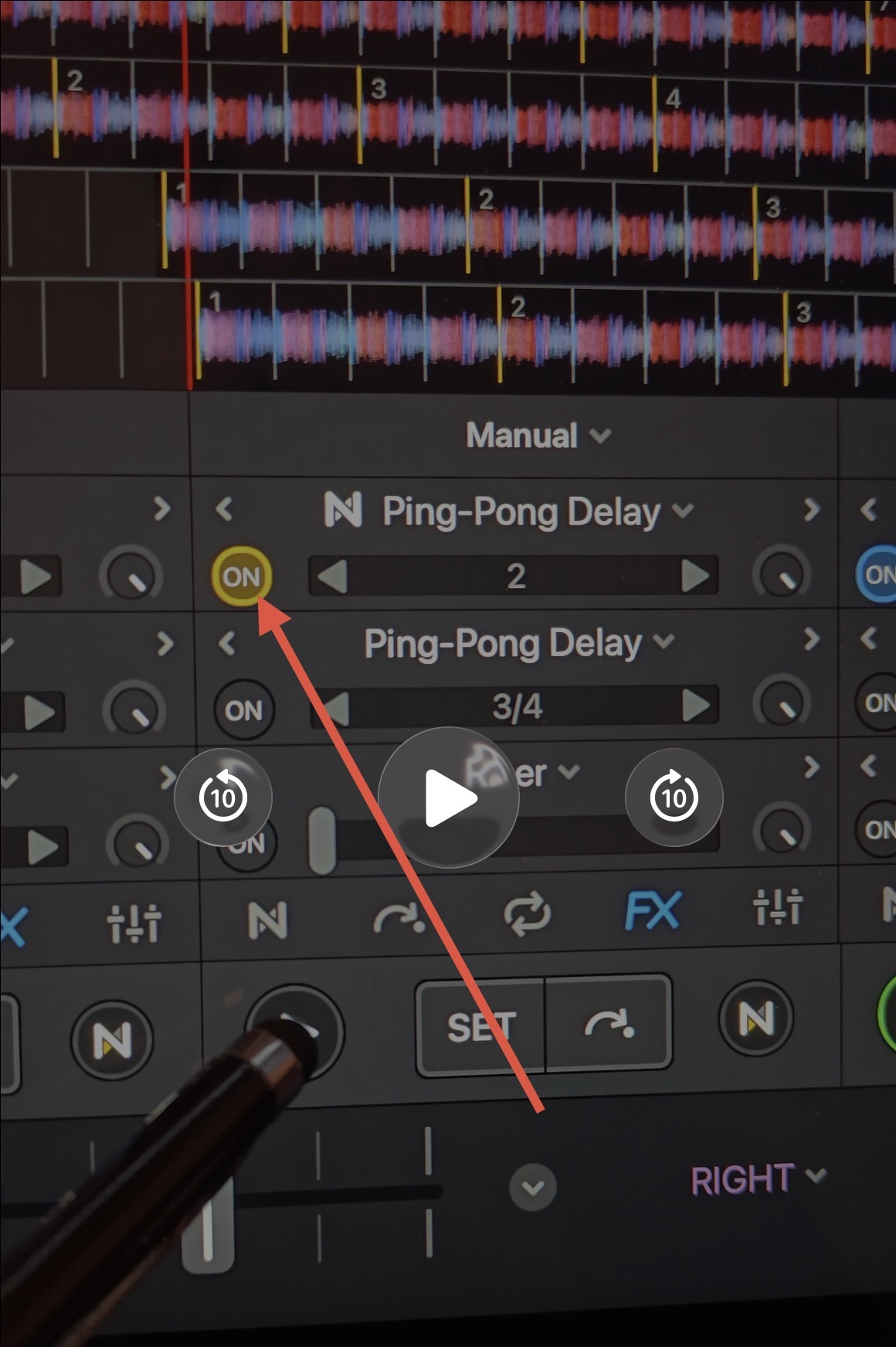 - You will know that FX are being applied to the full track when ton FX ON button is illuminated in Blue instead of in Yellow.