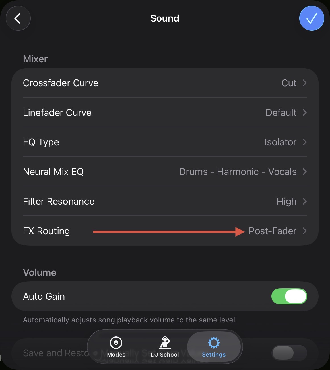 Hi @johnnyboyx, in the djay Settings>Sound>Mixer>FX Routing please enable Post-Fader.