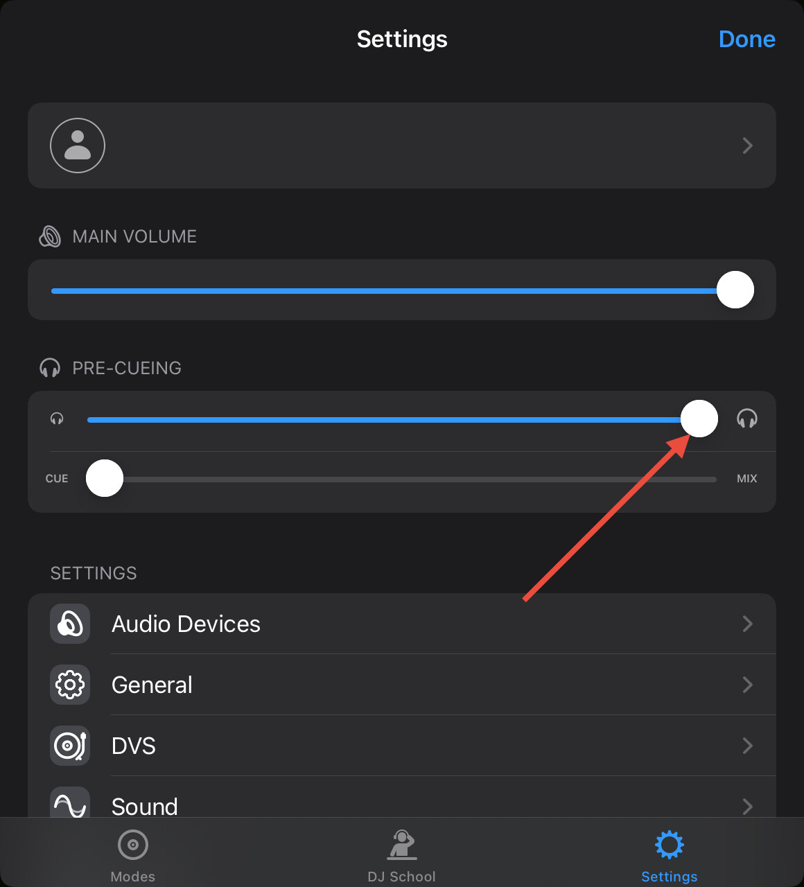 - Make sure the headphone slider is maximized when your DJ controller is connected to your iOS device (see below).