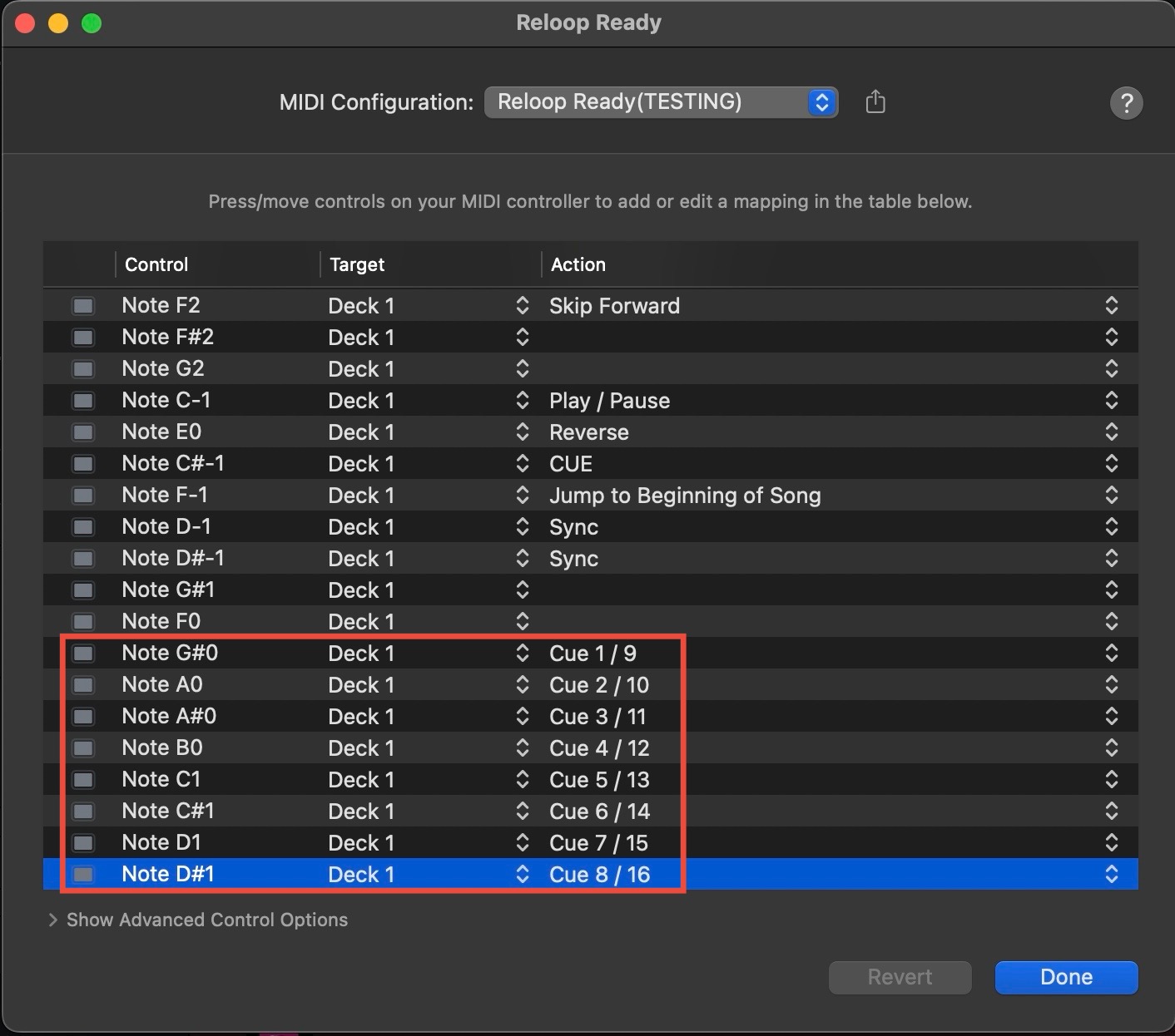 d. Then repeat this process for the other 7 hot cues for Deck 1.