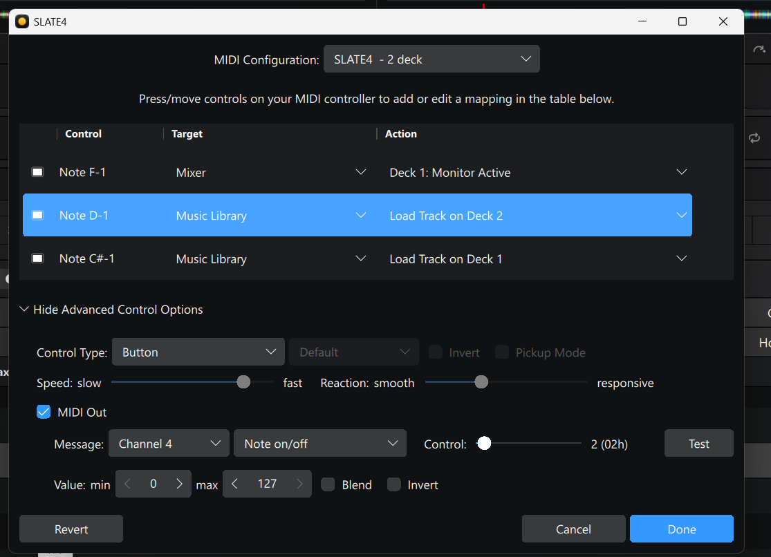 I am programming djay Pro for my Gemini Slate 4 controller. Right now I can load a track to deck one using the Load 1 button, but I can’t get the button to stay lit permanently to indicate that a track is loaded.