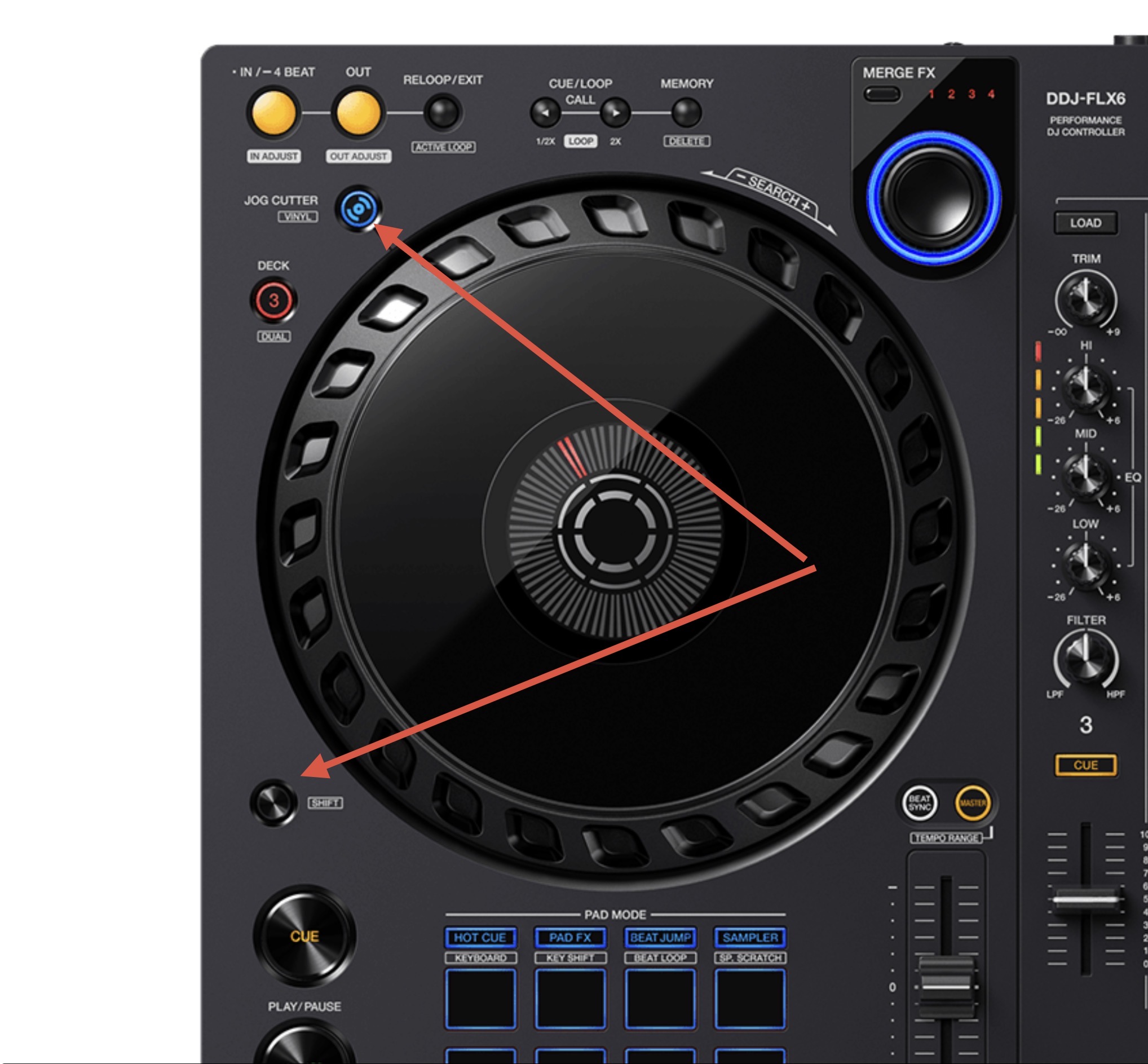 I recently switched from the FLX-4 to the FlX-6. Because in the old controller, if I touched the jog wheel lightly from the side, it made the song a little faster or slower. When I touched it at the top, I could either scratch or move the song all the way back or forward, i.e. move it freely.