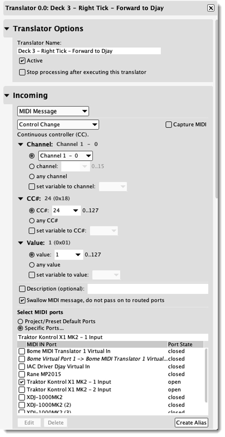 Once you’ve got to this stage we are ready to start adding “Translators” to Bome which will feed the virtual MIDI device “Djay Virtual In”.