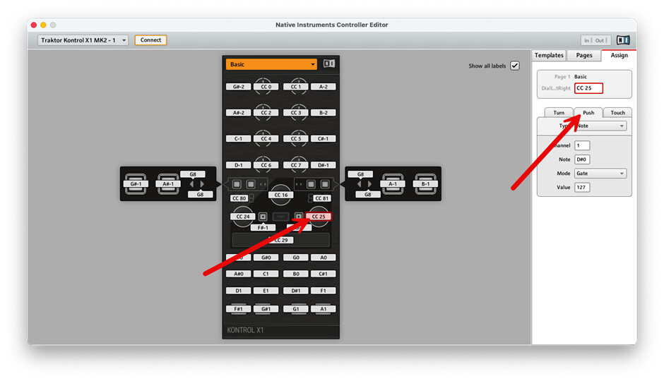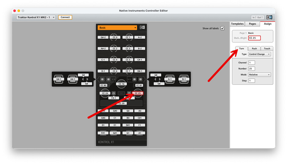 2.) Edit the “Assign” tabs for “Turn”, “Push” and “Touch” for both CC24 and CC25 which are the two Loop Length knobs. I believe these are the default values. If you have changed them, then be aware of this for the remainder of the configurations!