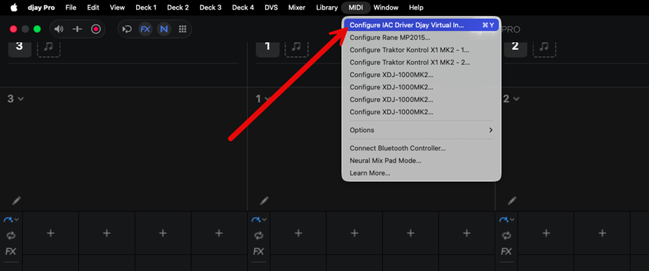 This is so that the X1 doesn’t interfere directly with Djay Pro. We now have our virtual MIDI device (using the IAC driver) doing that job for us.