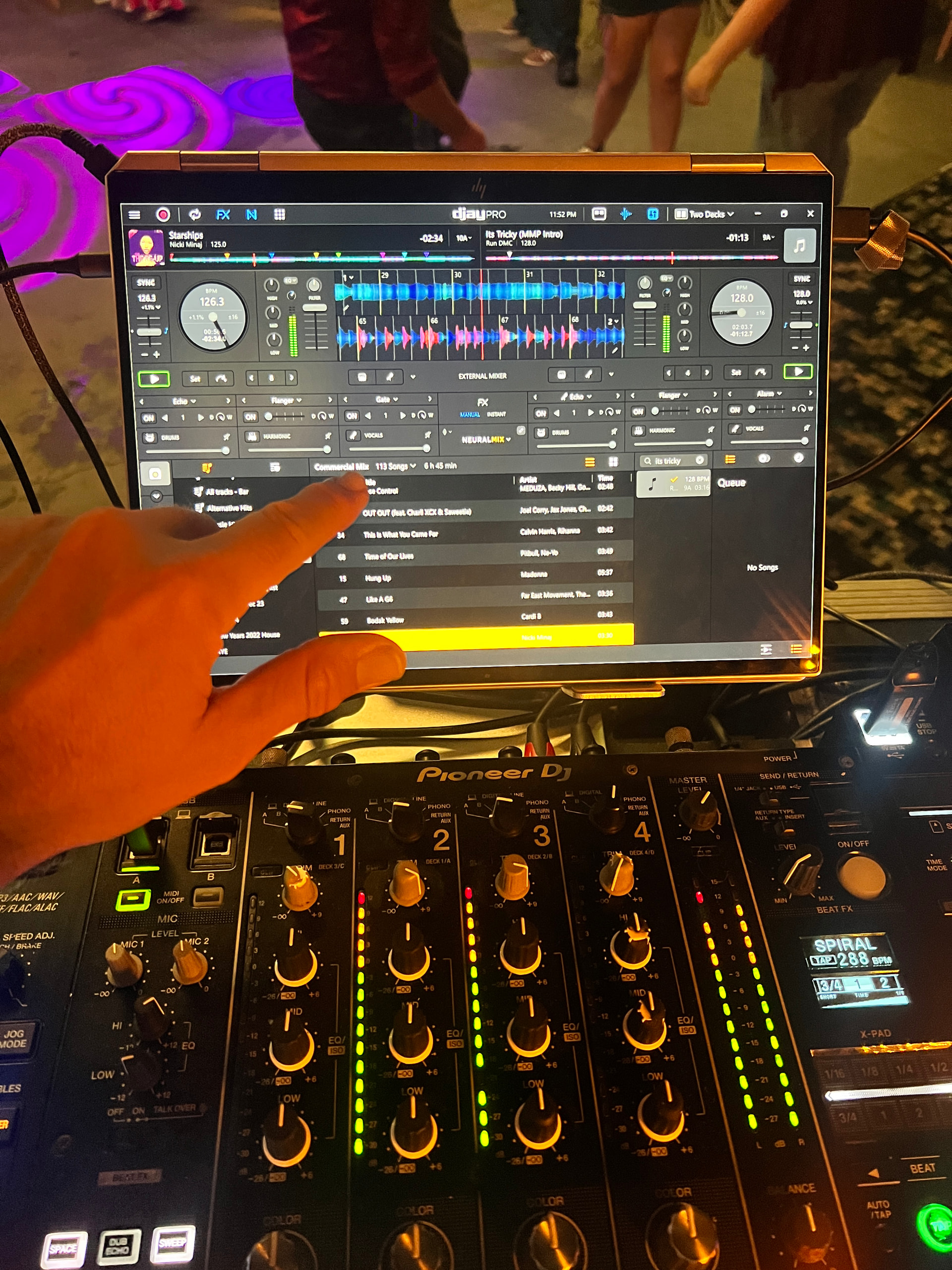 Integrating djay pro on a touch screen laptop is awesome - it feels like software and a hands on controller all in one except one BIG (or too small) thing - Everything is too small for a live environment. It’s ok if I’m sitting on the couch mixing at home but when live and moving around and having to make quick actions I’m constantly accidentally pushing wrong things, and that’s a shame because this really is the setup of the future,