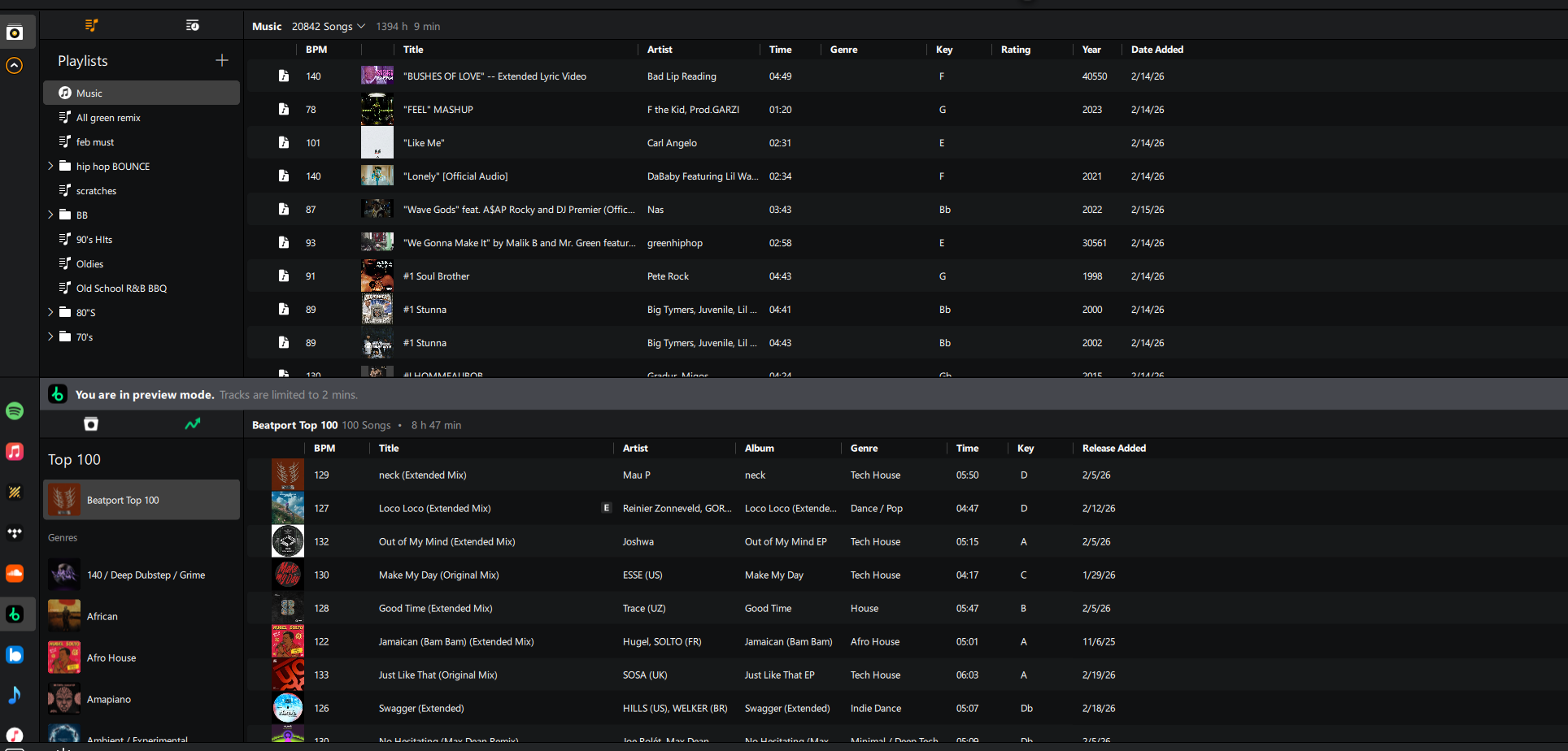 as i run a 720 portable screen stacking libraries makes it hard for me to look for music . i like how vdj does things . its a simple window with the folders from my local drive and i can make a playlist easy in the same window with my list area . i just scroll to it make a folder and im good to go . change the folder inn almost any color and u can look for music easy plus it has many right click options .and i8 have the option to look for music on my drive and streaming at the same time without needed another window for it . i do think they need brighter colors for folders tho