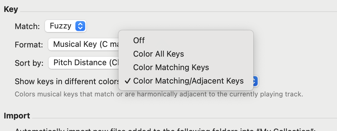 I noticed that six possible harmonic or energy options don’t get a color, even though they are valid transitions and the setting is already on “Color Matching – Adjacent Keys.” Examples: