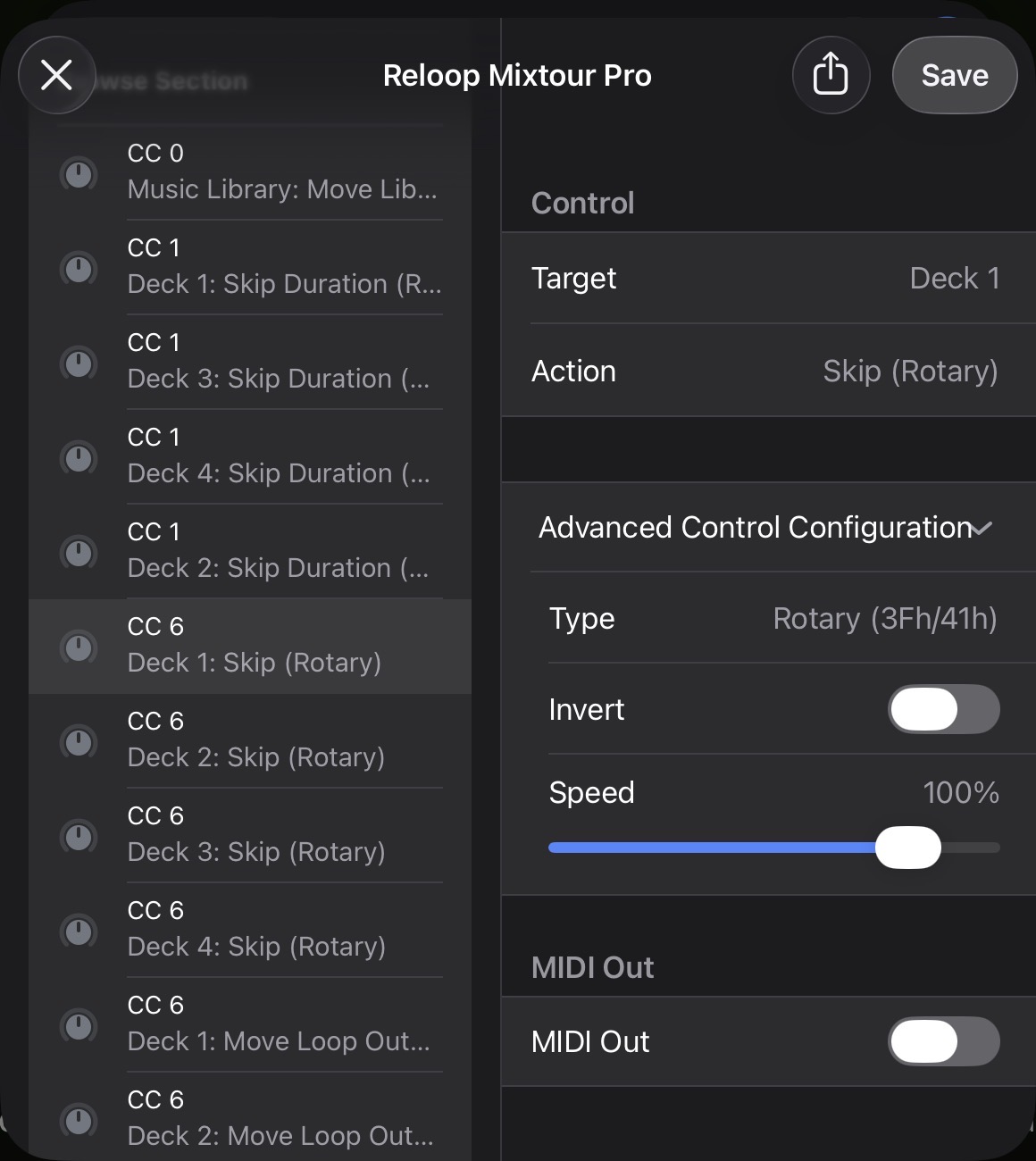 The (built-in) MIDI mapping doesn’t have any controls for Beat Jump/Skip. I also use this function a lot, so I customized my MIDI mapping. I use the Deck 1 MODE+Browse Knob for Deck 1 Skip and the Deck 2 MODE+Browse Knob for Deck 2 Skip. You will have to use the onscreen controls to set the Skip Size or custom map that to some other controls on the Mixtour Pro.