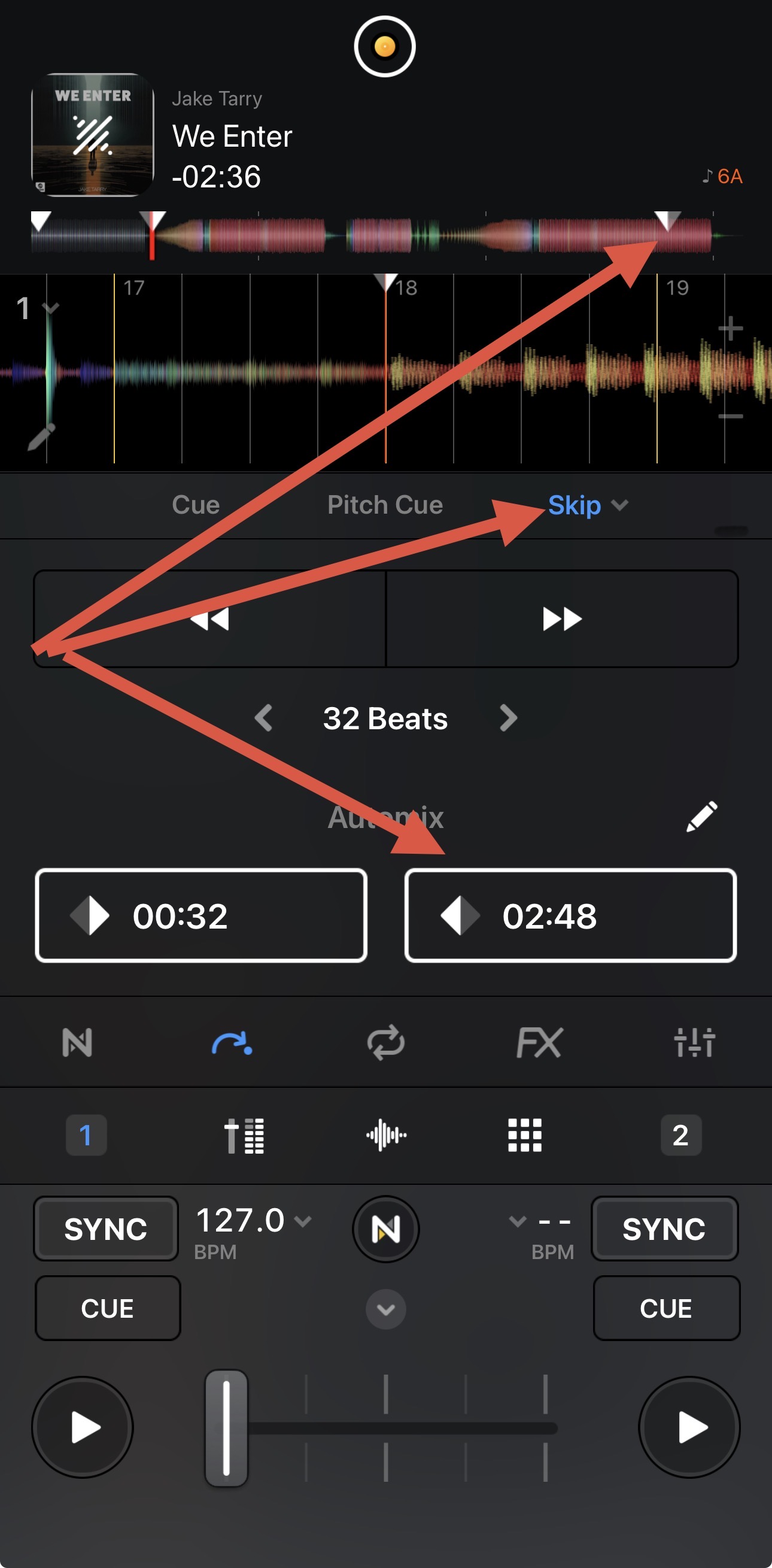 For example, sometimes I want to go to the peak of the build up of Song 1, then having the first beat of Song 2 slamming as beat drop. I guess this is something that I am probably far from being the only one doing. So, could be of general use. And probably not too difficult for the Dev team, as you can already move the cursor before the start of a song. But you can’t place a cue point there (at least not an automix starting point).