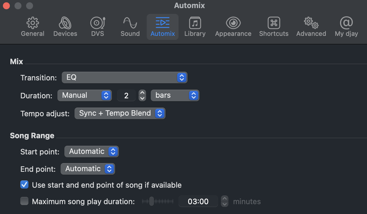 Therefore, for true “Full Auto” Automix, you better go for “Sync + Tempo Blend”. Then it should be flawless. (I don’t see the use for “Automatic”, tbh. Or at least, this behaviour should be better described).