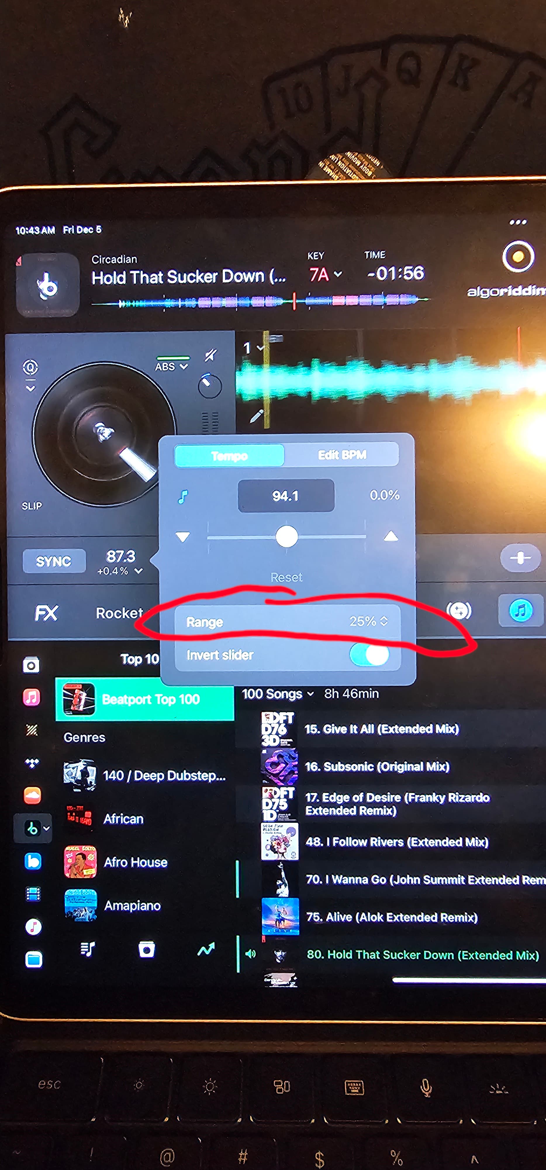 When I go into DJay’s pitch range setting and choose a larger range, say 16% or 25%, it doesn’t seem to change the range of BPMs I can achieve with my turntable pitch slider.