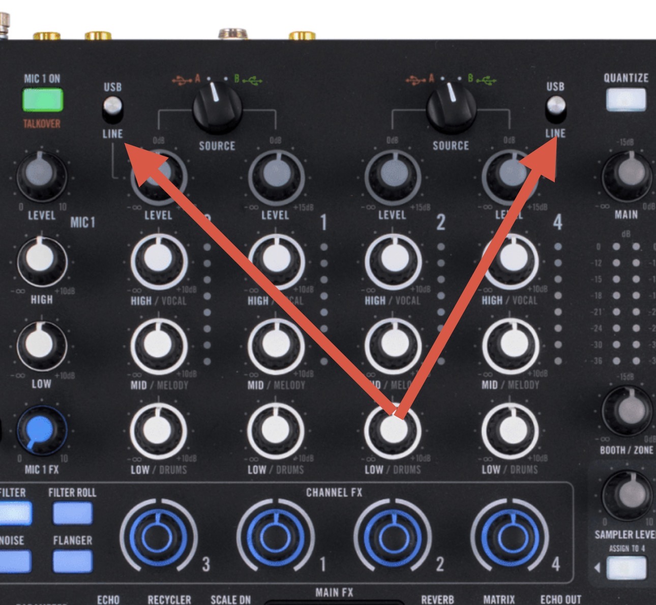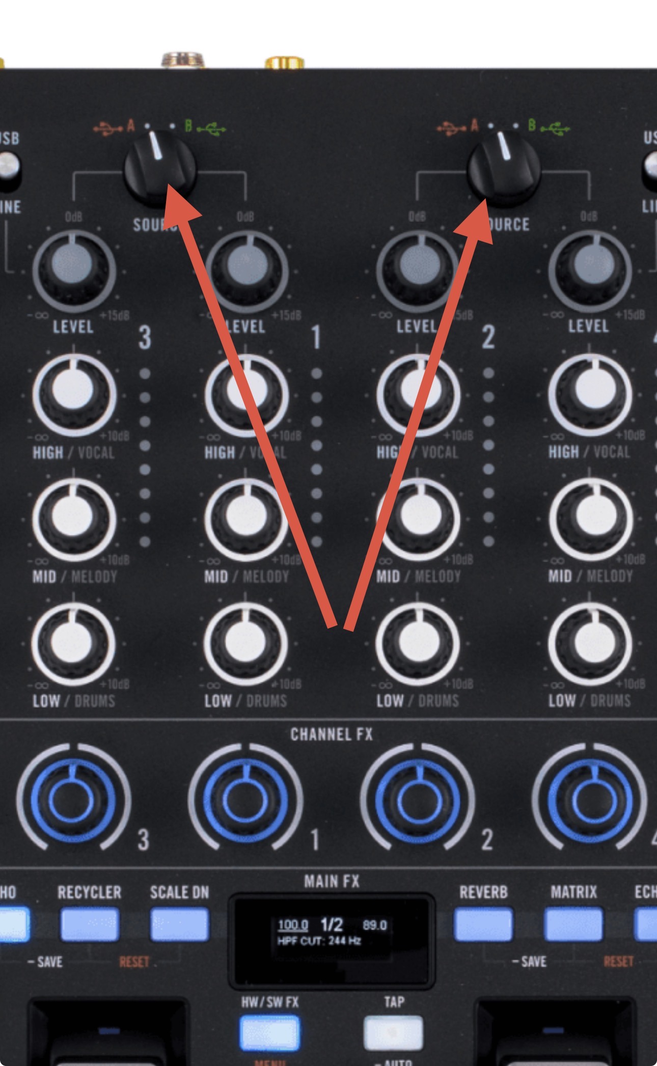 Another thing concerns the Stems with the HI MED LOW gain settings. When I first turn it on, I can use the STEMS, but it also affects the EQ. I have to press Shift plus the PFL/Cue button to switch back to EQ, and then back to STEMS for it to influence ONLY the STEMS.