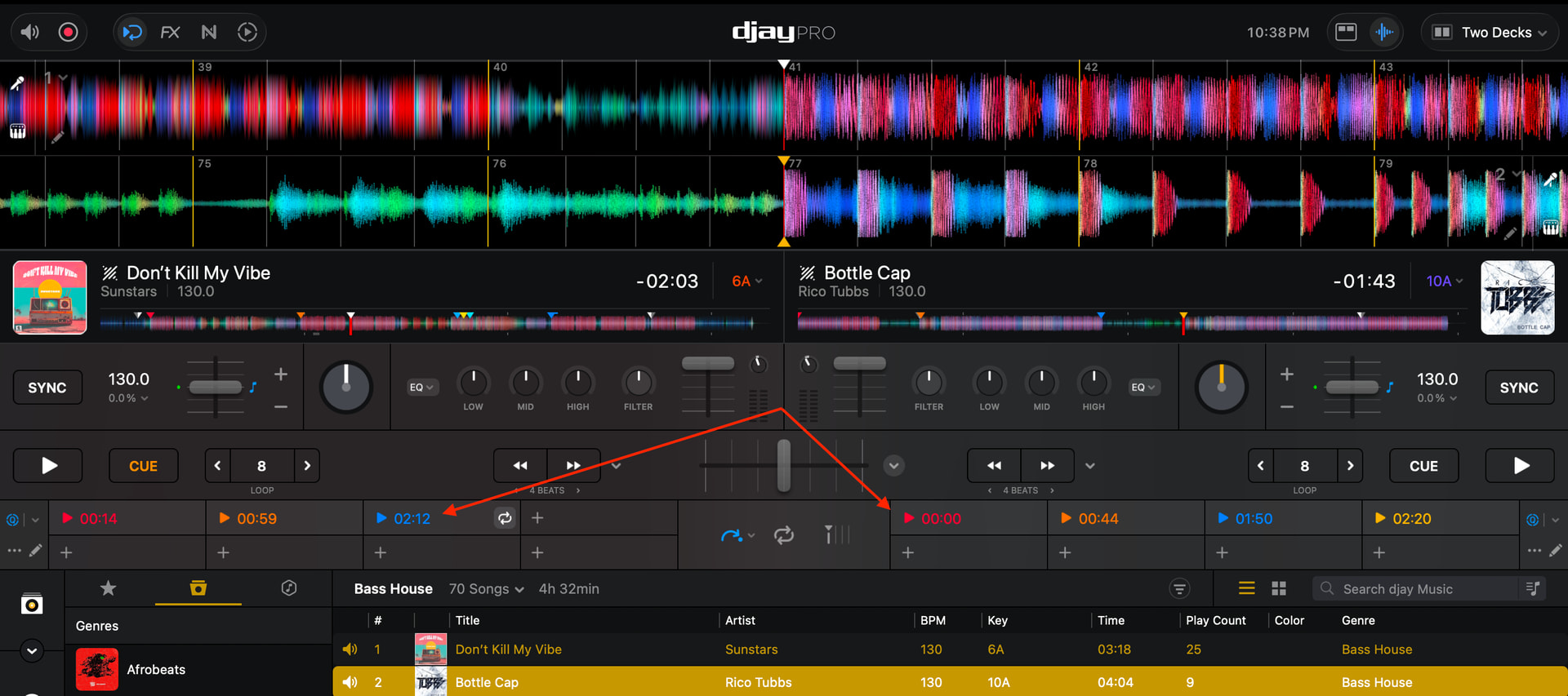 The big difference, those other two programs are laptop software, whereas Djay caters to touch screen interfaces so needs cue points to be large in order to facilitate people being able to quickly touch them.