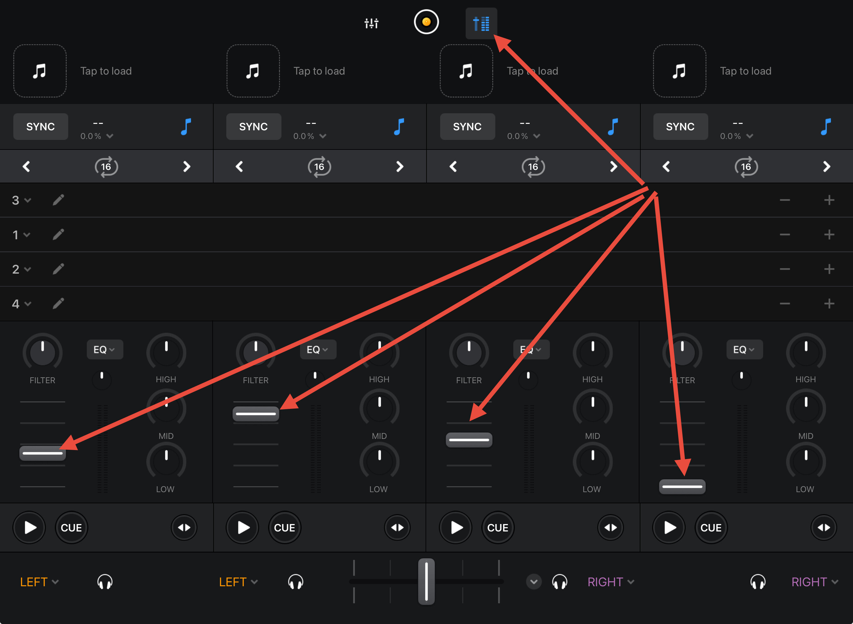 The faders are used for the same deck so it is vital to see where they are when switching between them because they dont correlate with the physical fader.