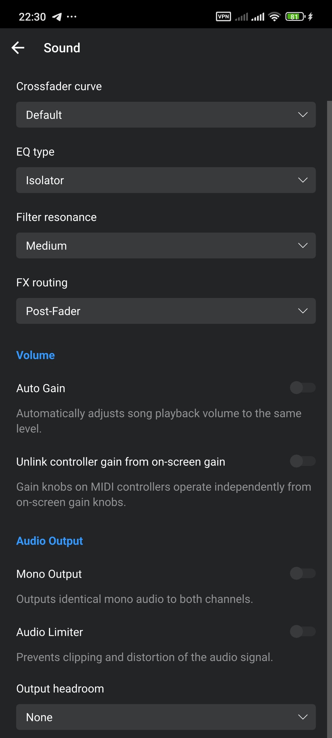 - Please share screenshots of your djay Settings>Sound.