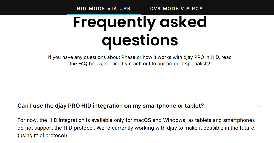 Hi @djessa, Phase HID mode is currently only available on desktop (macOS/Windows).