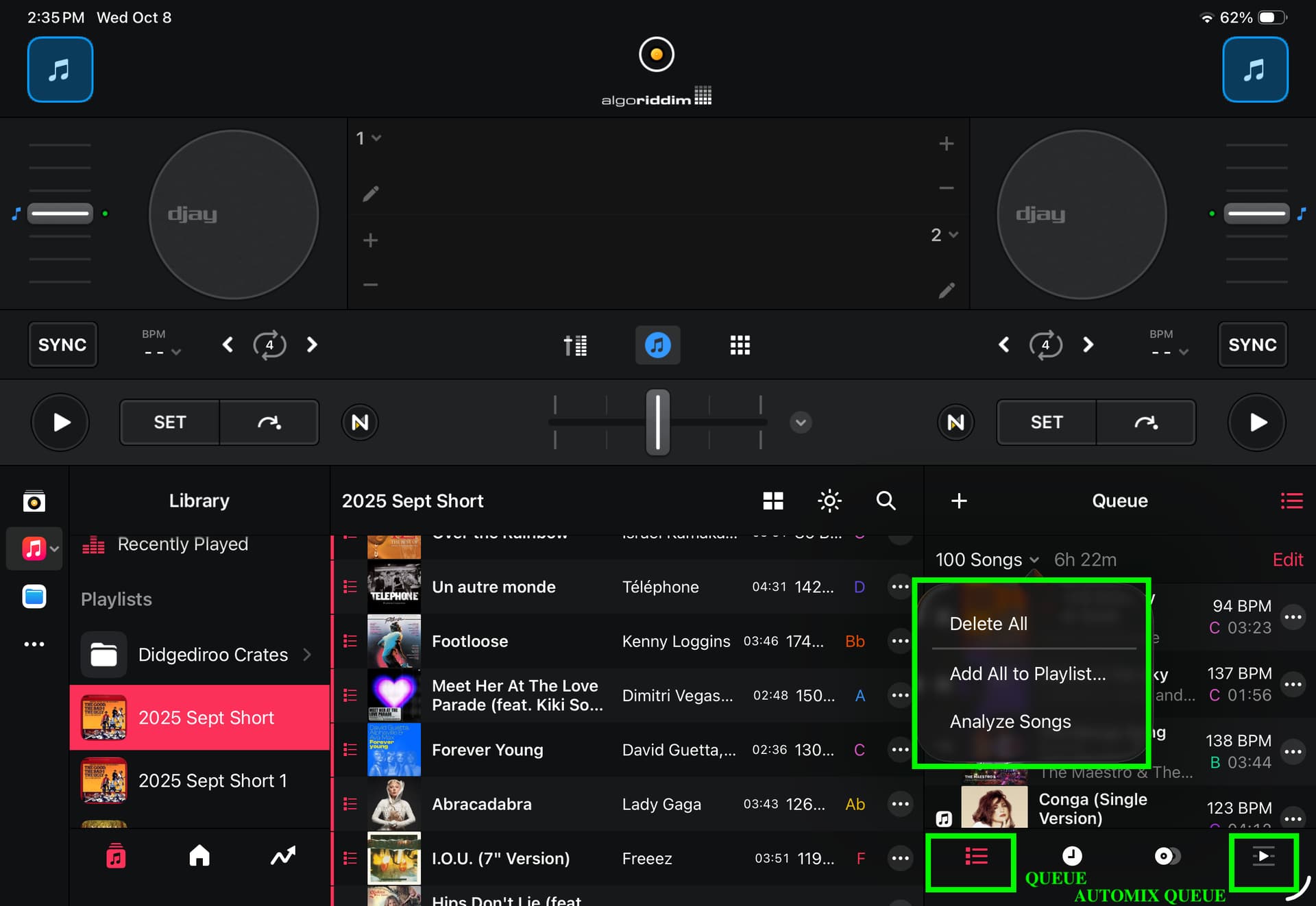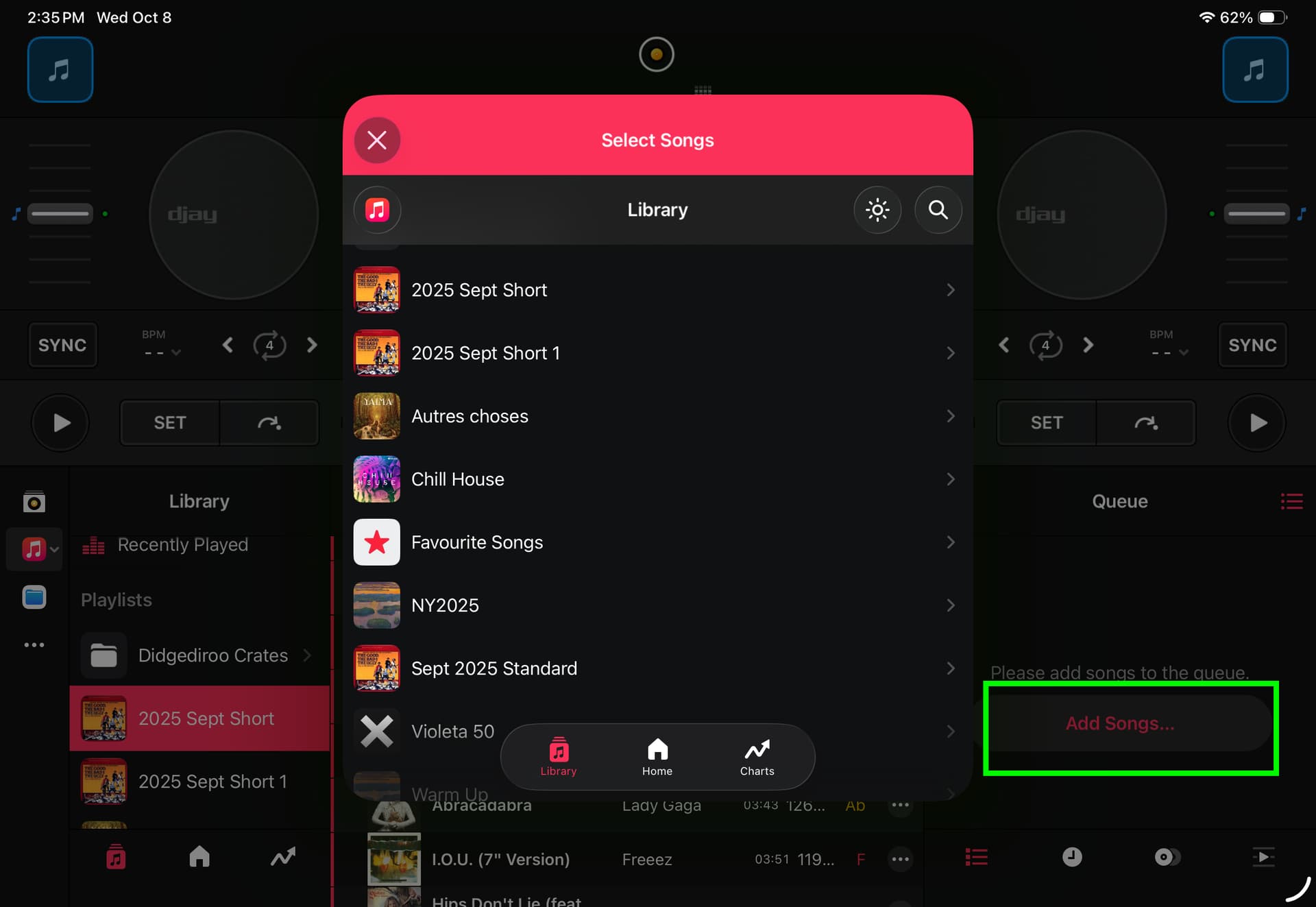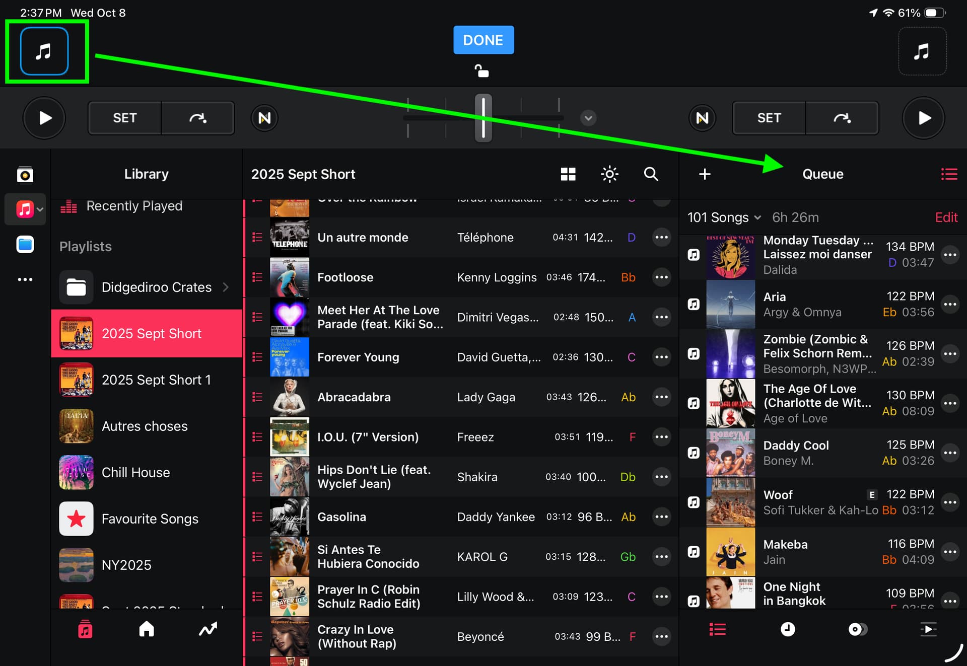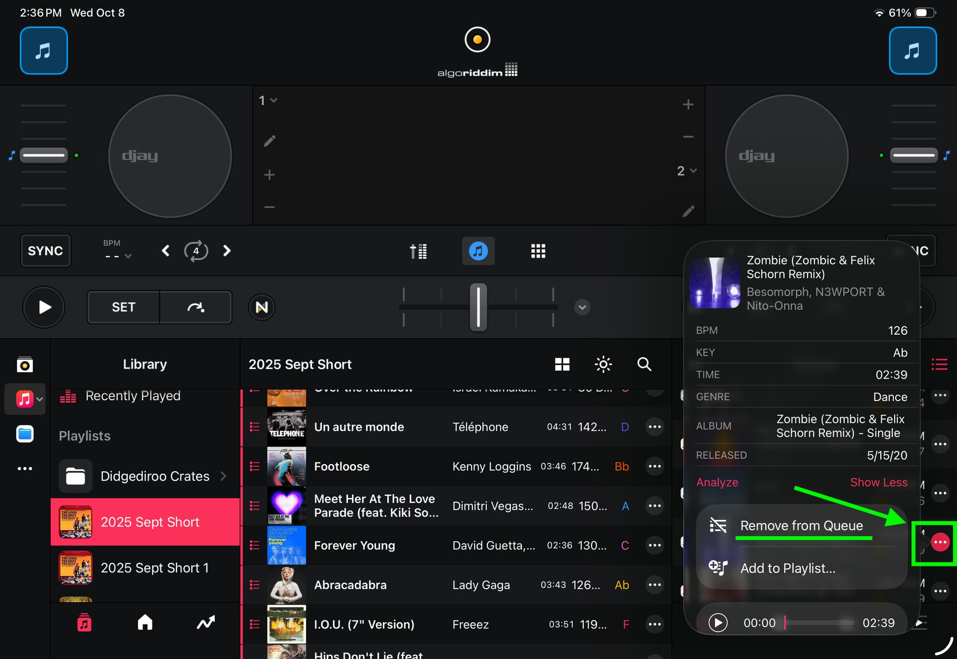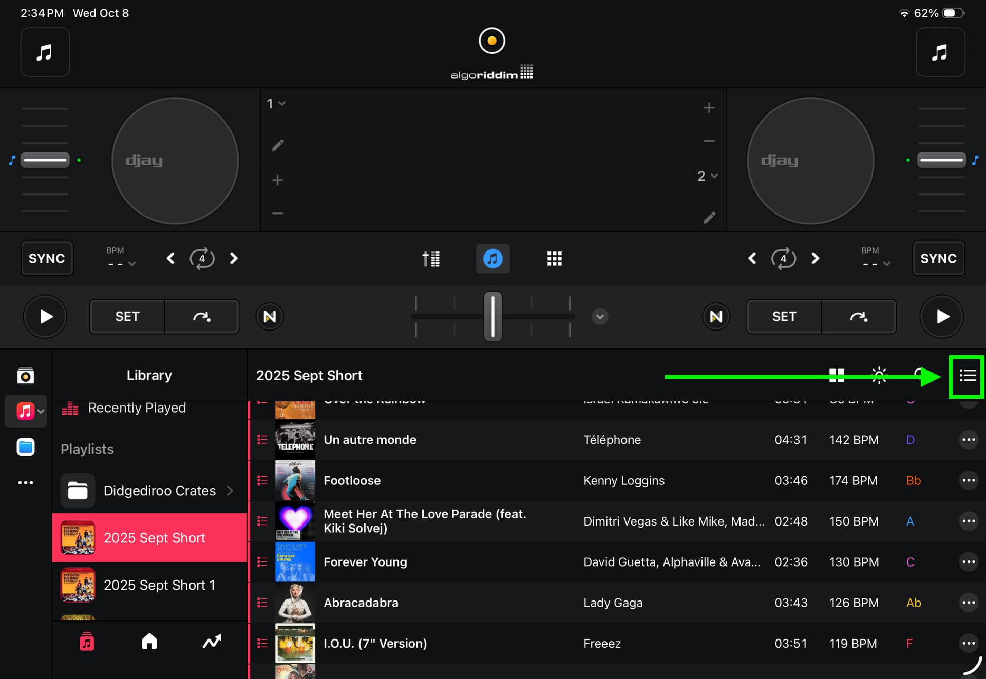 But your problem will be solved using Days Queues in Djay (not directly altering the Apple Playlists in Djay).