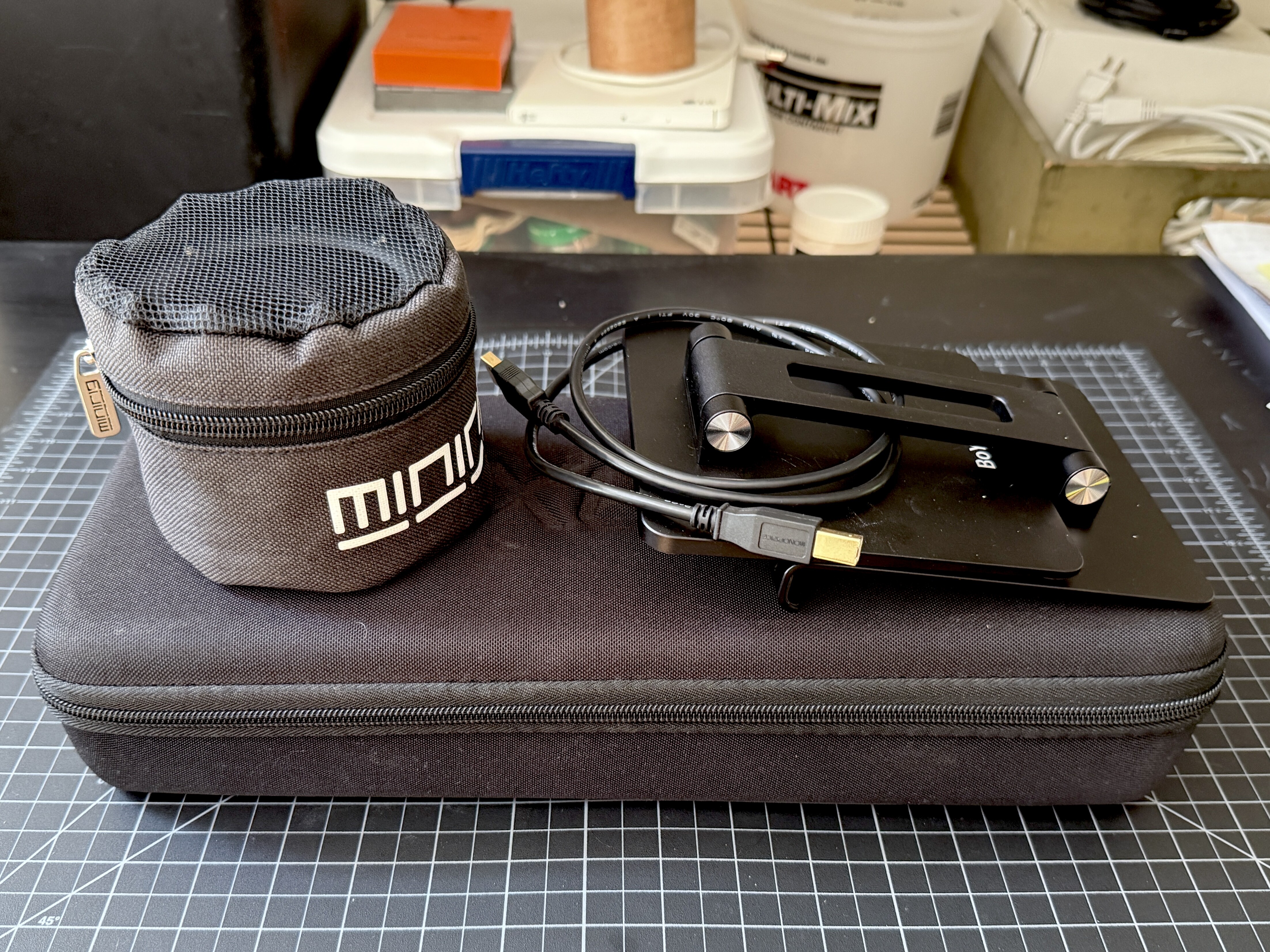This setup is usually used in its case with my Mac mini. I pulled it out so I can practice from the comfort of my couch.