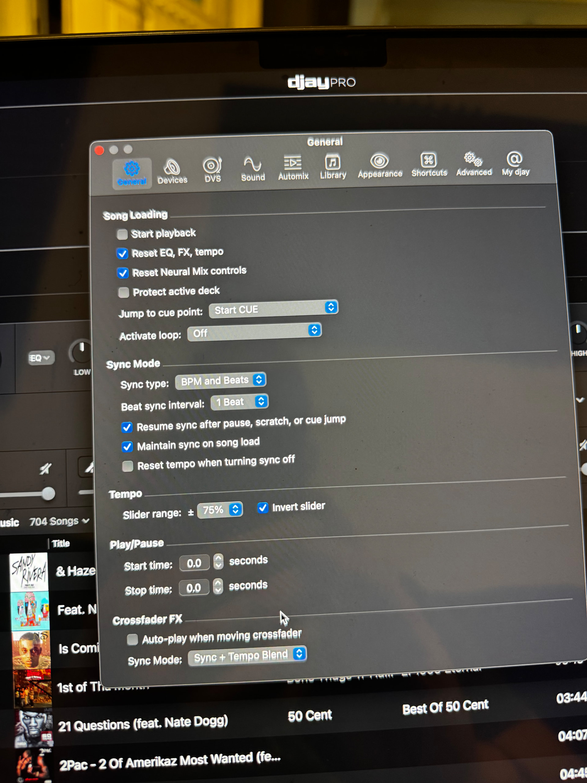 - Can you please share a screenshot of your djay Settings>General>Sync Mode?