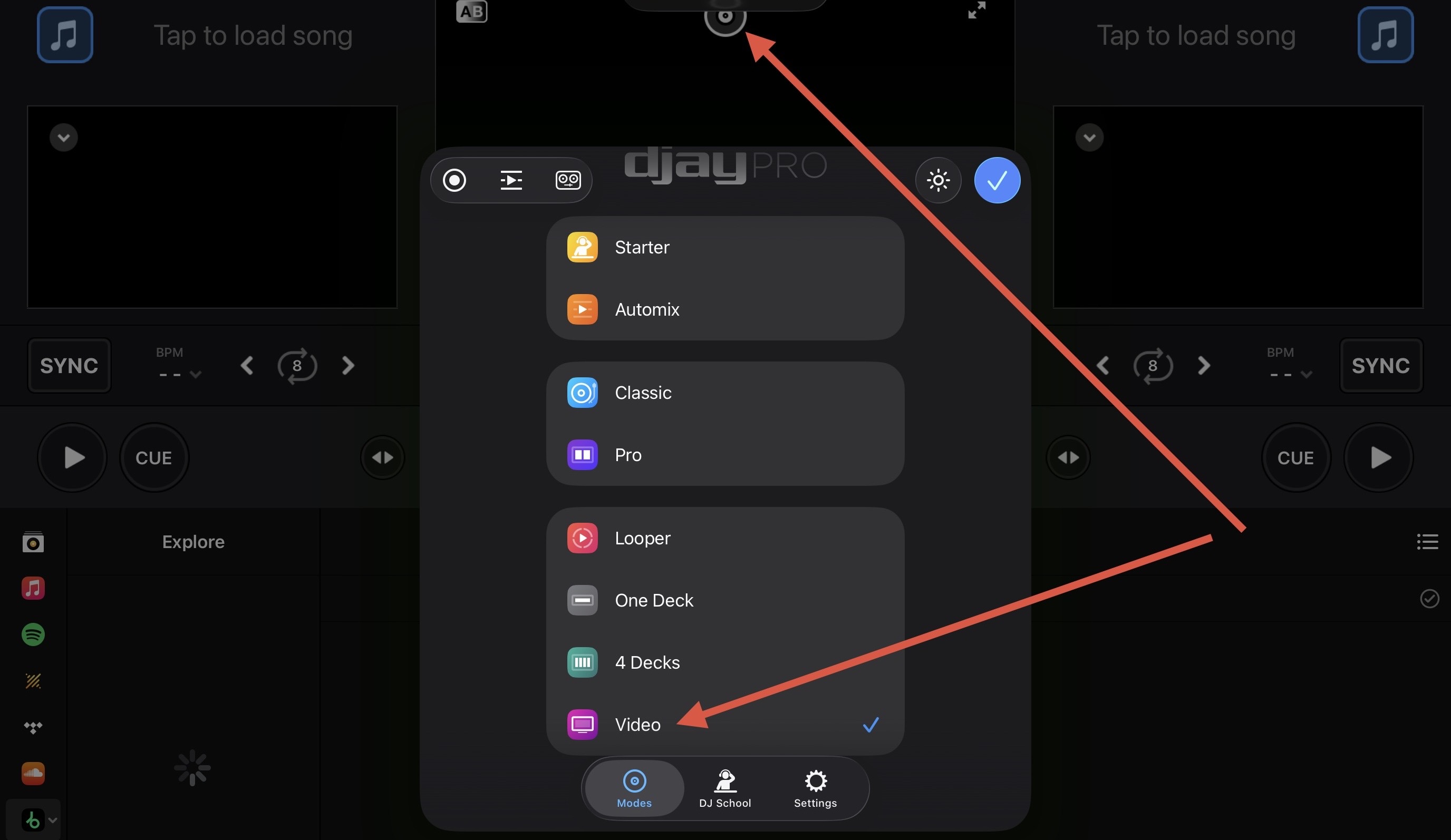 In djay “advanced setting”, set video “Size to Fit” as “Auto” or “Fit” and retry.