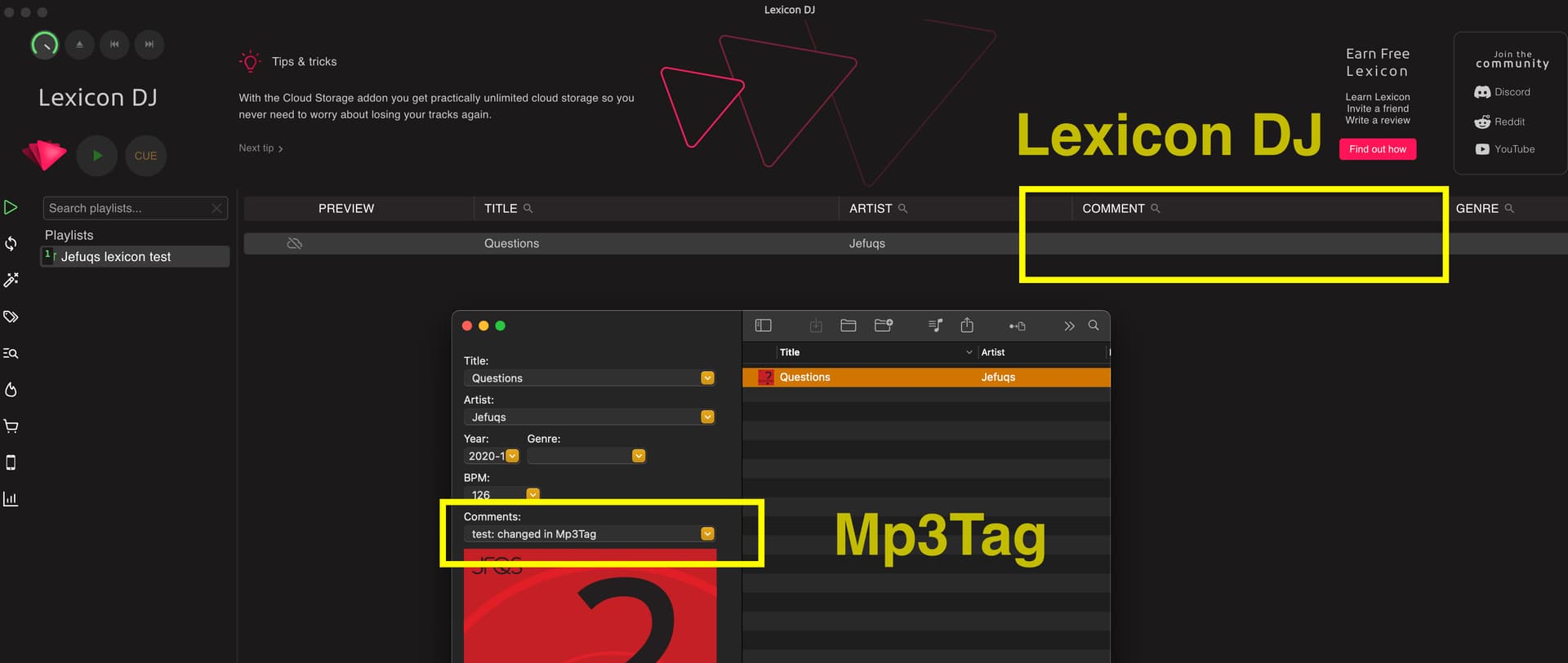 Result: comments written in Lexicon disappear in Djay Pro, and comments written in Djay Pro disappear in Lexicon