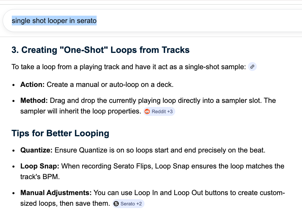For me to get involved on the mouse/keypad with saving a file, loading the file, loading it into a sampler, etc., that’s not a workflow that provides a good user experience for someone doing live DJ on the fly, when they just wanna copy and continue a current running loop *in a single track* to carry over, while they load another track into the same deck.