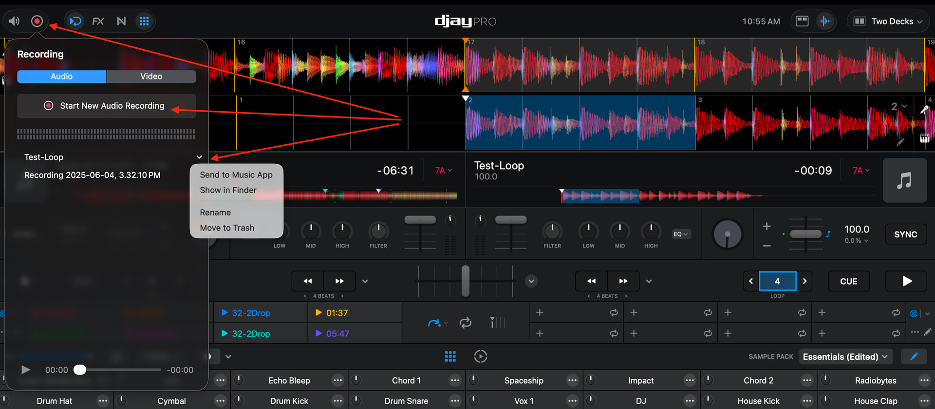 I’ve been trying to figure out how to use the record function to create a new loop on the fly, and then be able to continue playing that loop separate from the tracks so that I can use it for a third track interlude between the two tracks that are loaded into deck mode.