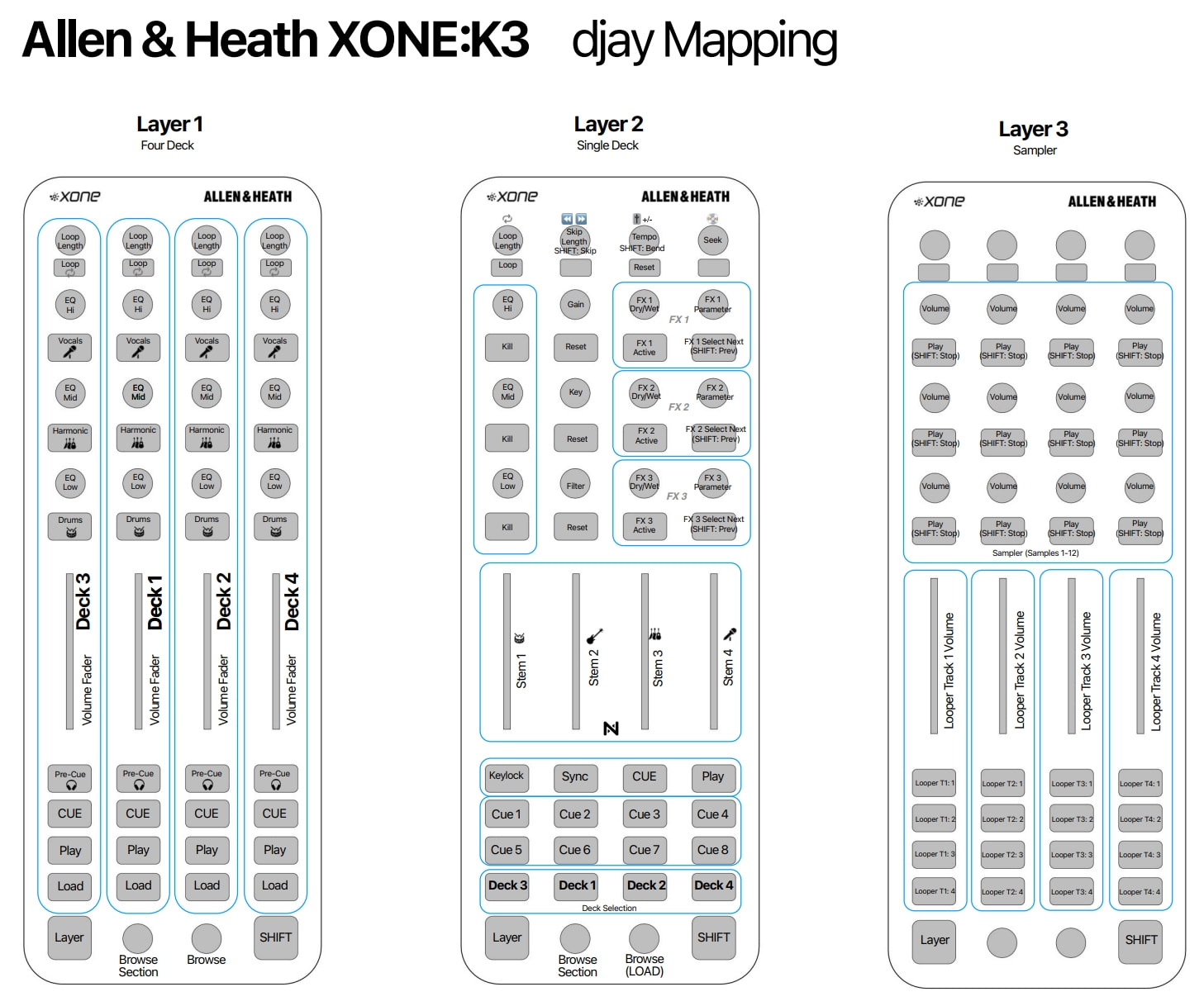 - Hardware/controllers used (e.g. Reloop Mixon 8 Pro): Allen & Heath Xone k3