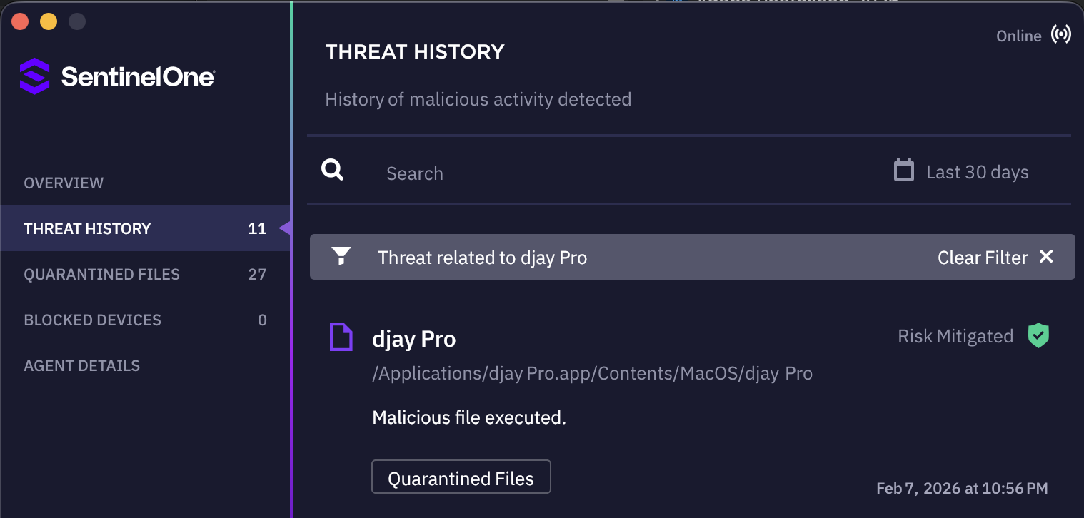 3. Once updated to 26.2.1 or higher , djay should no longer be detected as VSearch/PUP.